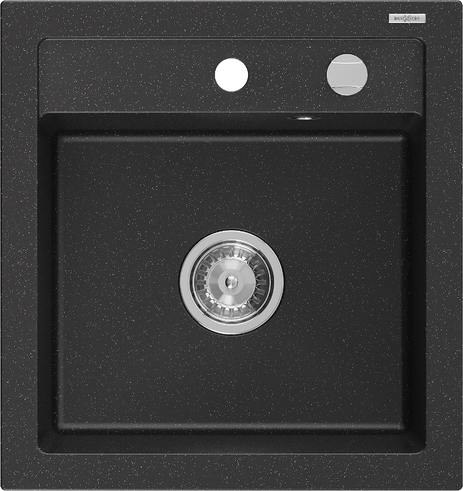 Mexen Vito lavello in granito a 1 vasca 520 x 490 mm, nero/argento metallico, sifone cromato - 6503521000-73