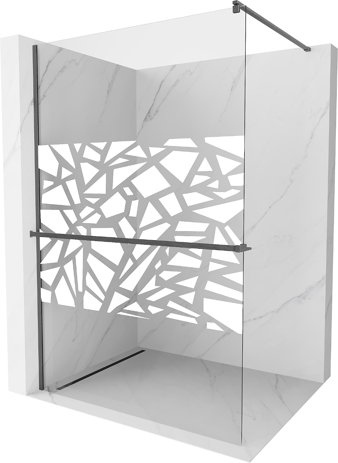 Mexen Kioto+ Parete doccia con mensola Walk-in 80 x 200 cm, motivo bianco, grigio canna spazzolato - 800-080-121-66-85