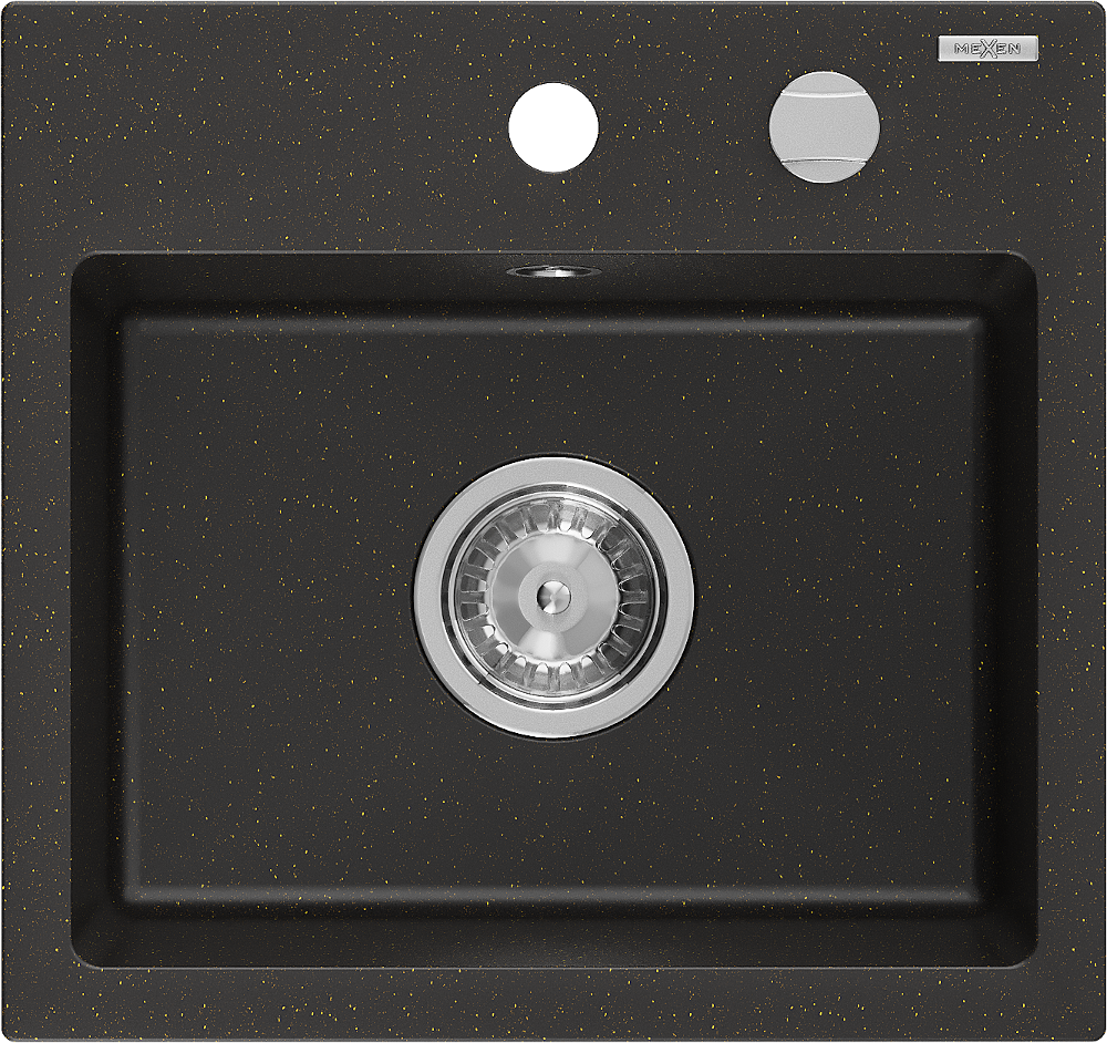 Mexen Milo lavello in granito monovasca 435 x 410 mm, nero/oro metallizzato, sifone cromato - 6505441000-75