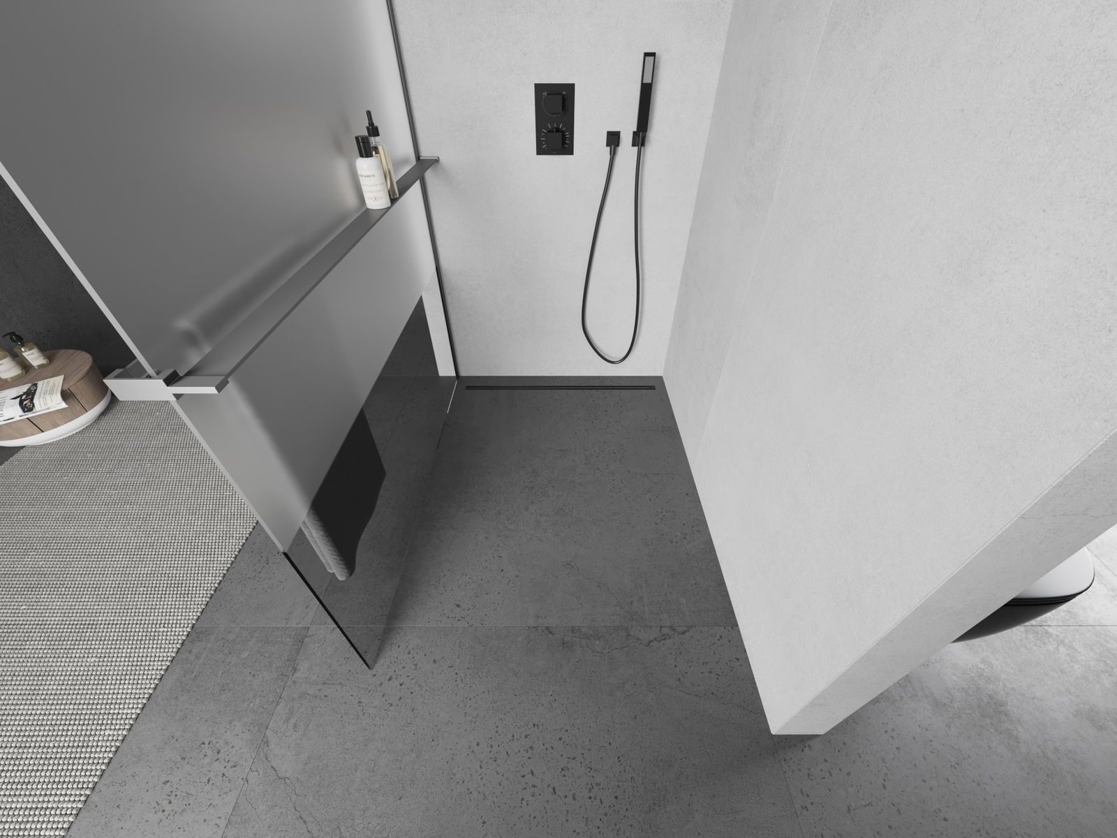 Mexen Kioto+ pannello doccia con mensola Walk-in 80 x 200 cm, trasparente/brina, gun metal - 800-080-121-95-35
