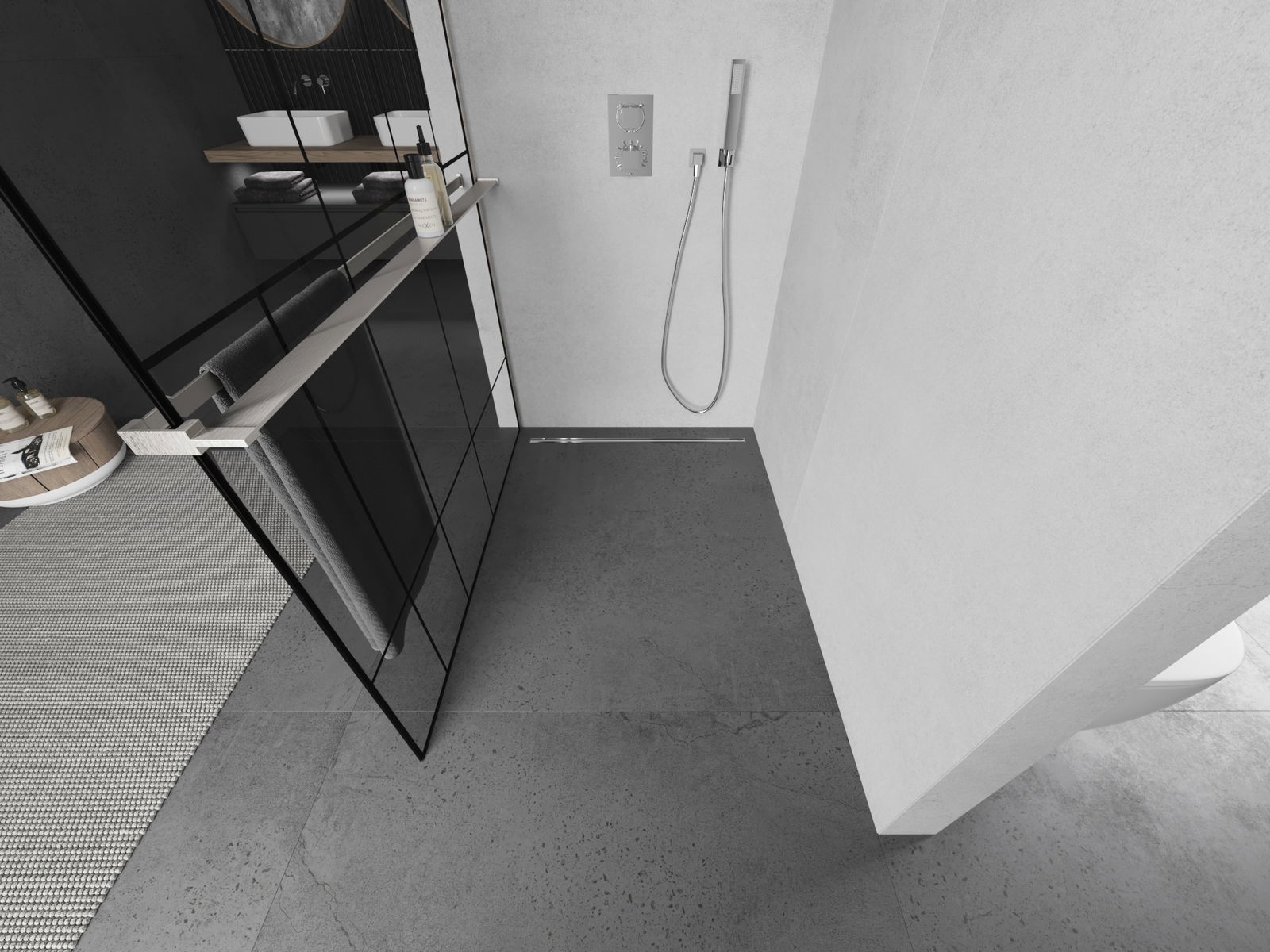 Mexen Kioto+ Parete doccia con ripiano Walk-in 130 x 200 cm, motivo nero, nichel spazzolato - 800-130-121-97-78