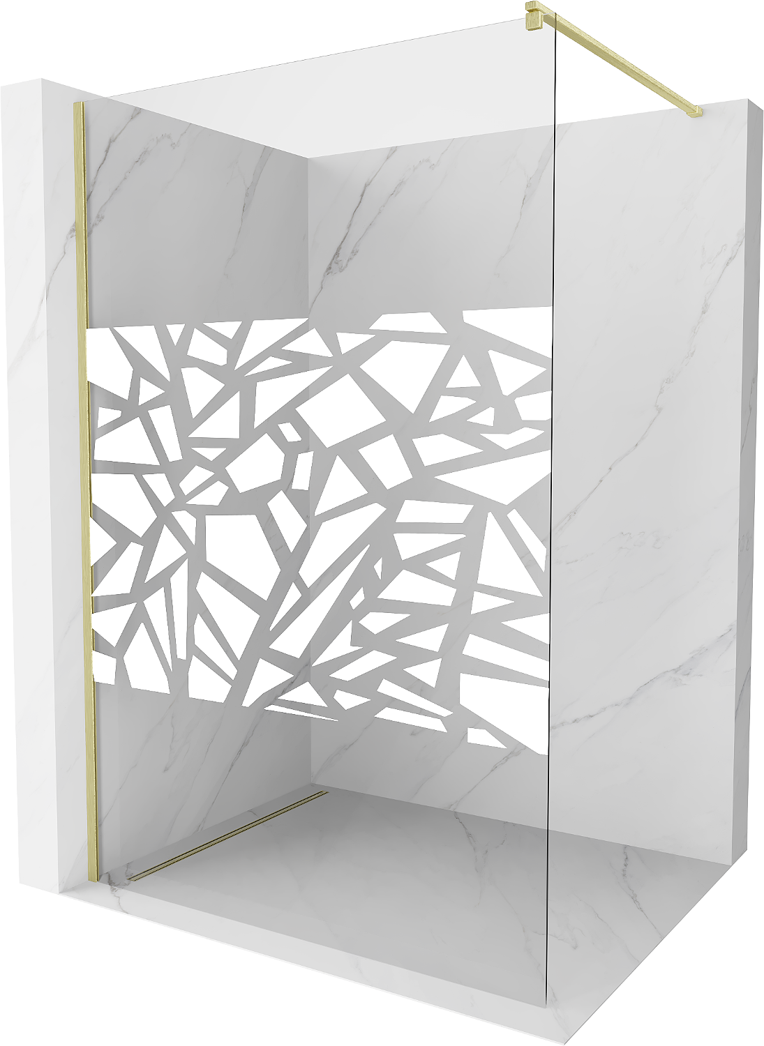 Mexen Kioto parete doccia Walk-in 130 x 200 cm, motivo bianco 8 mm, oro spazzolato - 800-130-101-55-85
