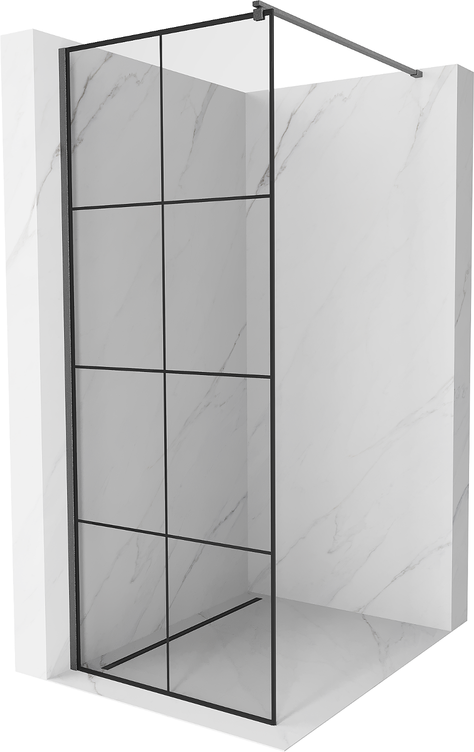 Mexen Kioto parete doccia Walk-in 70 x 200 cm, griglia nera 8 mm, gun gray spazzolato - 800-070-101-66-77