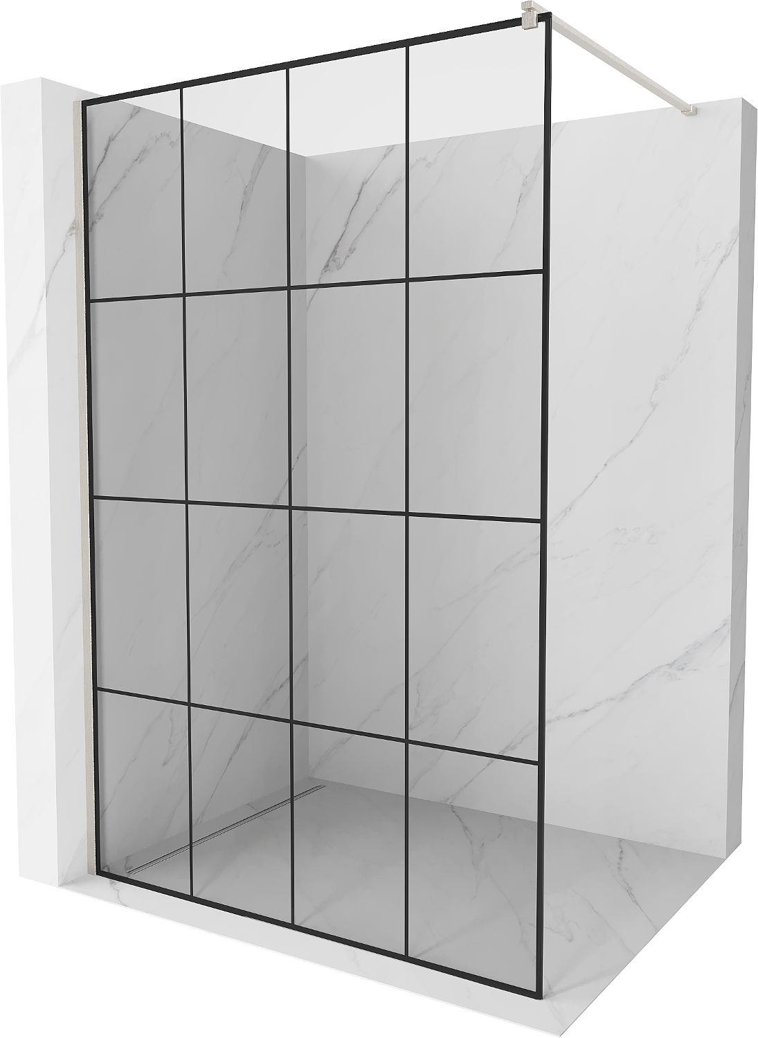 Mexen Kioto parete doccia Walk-in 160 x 200 cm, griglia nera 8 mm, nichel spazzolato - 800-160-101-97-77