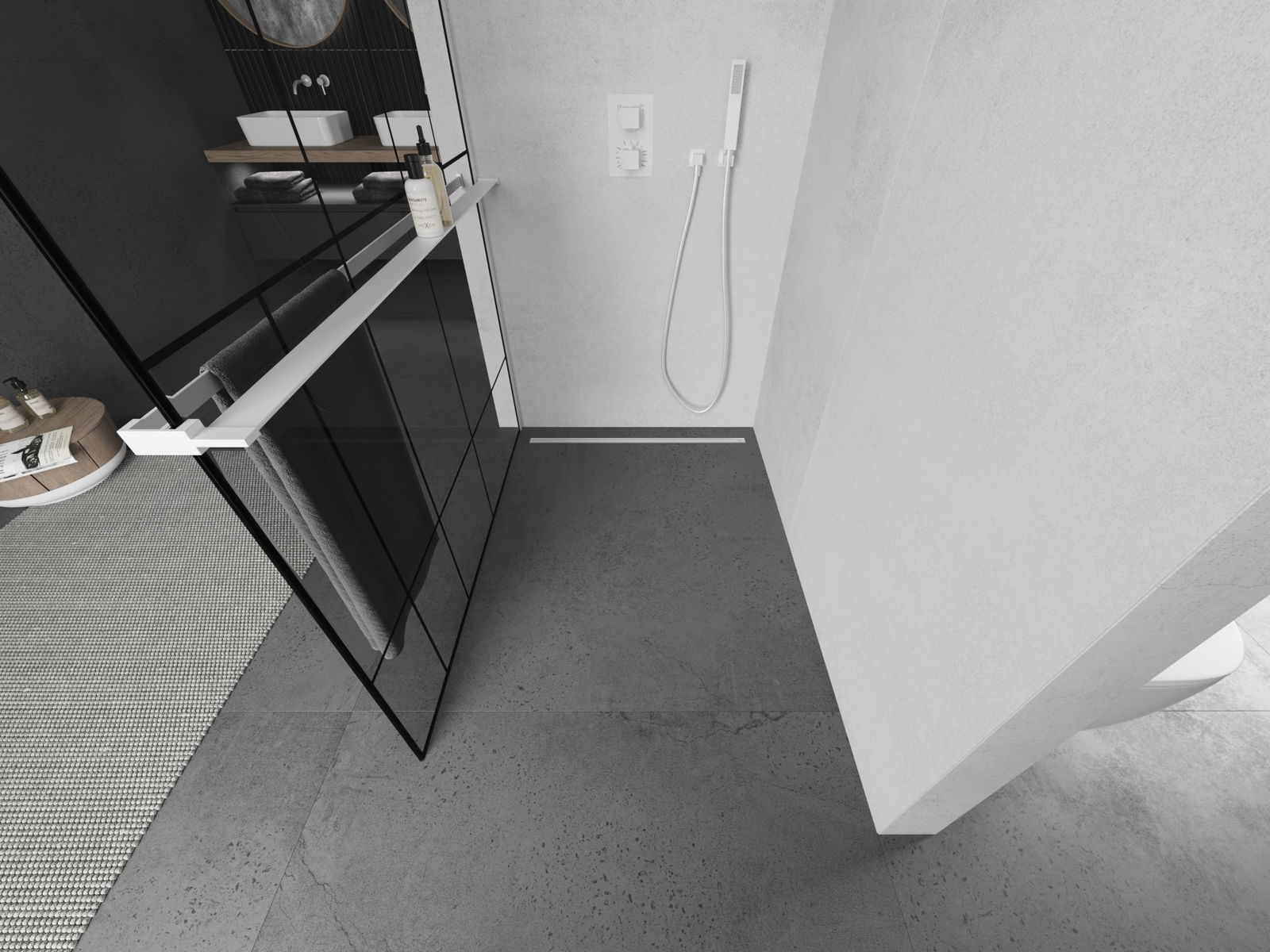 Il supporto per asciugamano nella parete della doccia è una soluzione molto pratica e comoda. Durante la doccia l'asciugamano è sempre a portata di mano, facilitando l'uso libero. È anche un posto ideale per asciugare l'asciugamano.