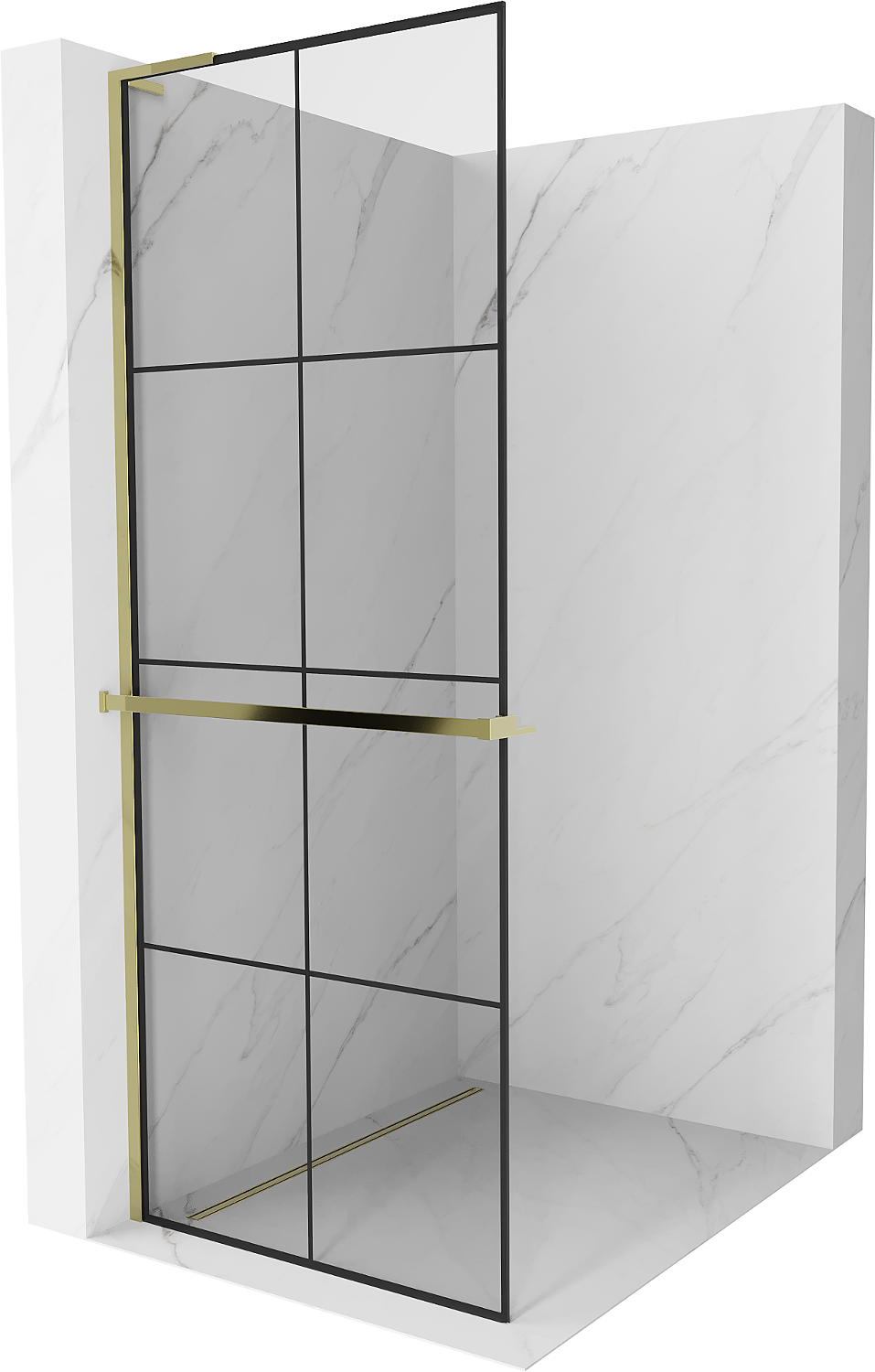 Mexen Kioto+ L parete doccia con mensola Walk-in 90 x 200 cm, griglia nera, oro - 800-090-123-50-77