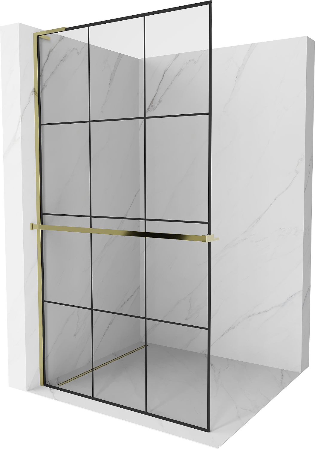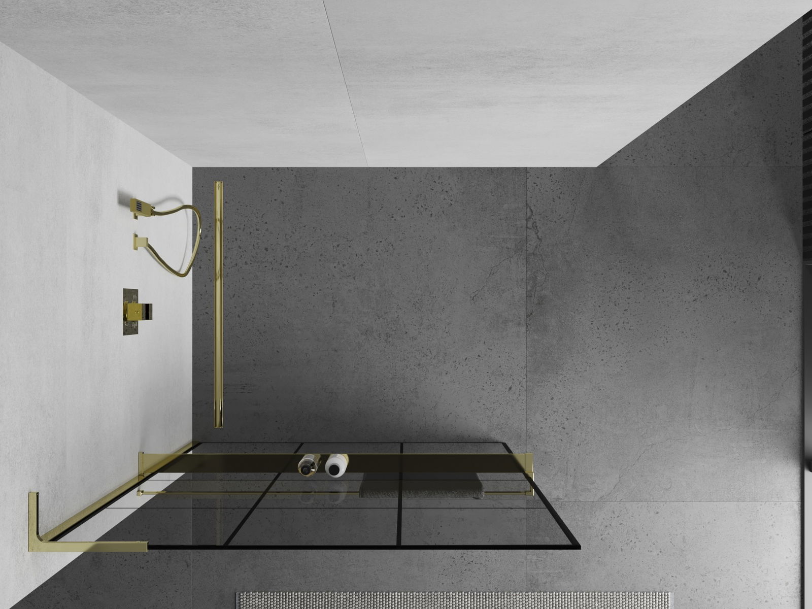 Mexen Kioto+ L parete doccia con mensola Walk-in 120 x 200 cm, griglia nera, dorata - 800-120-123-50-77