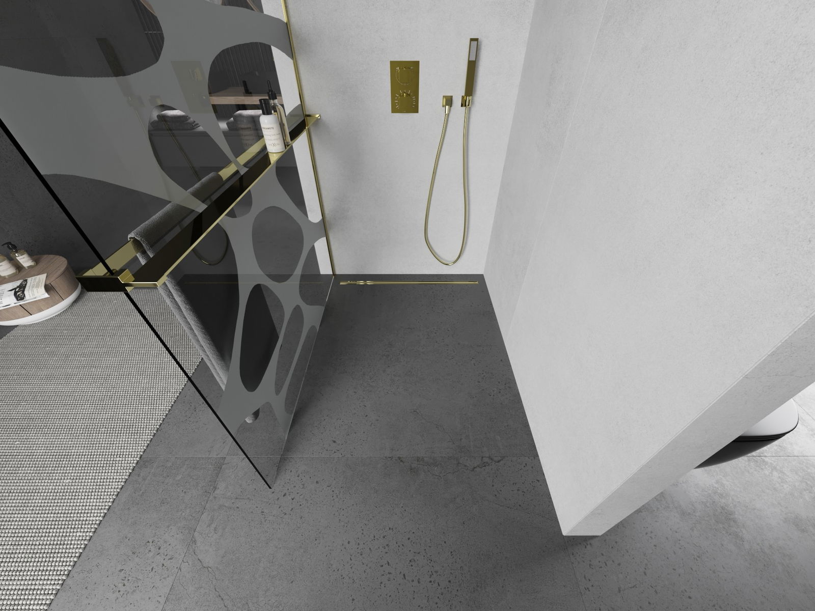 Mexen Kioto+ L parete doccia con mensola walk-in 70 x 200 cm, onda bianca, oro - 800-070-123-50-97