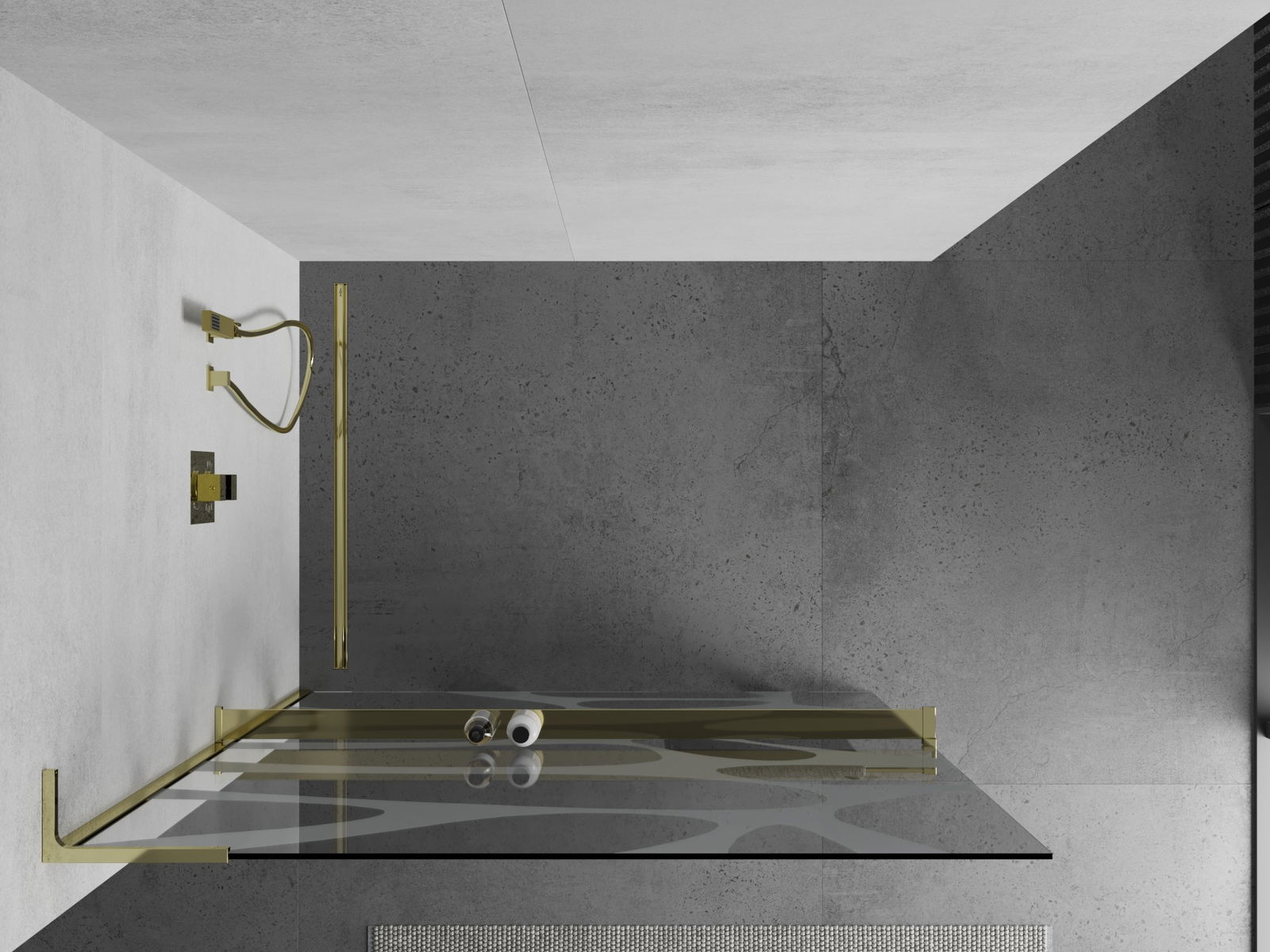 Mexen Kioto+ L parete doccia con mensola Walk-in 80 x 200 cm, onda bianca, oro - 800-080-123-50-97