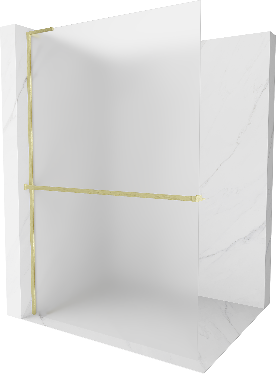 Mexen Kioto+ L parete doccia con mensola Walk-in 110 x 200 cm, ghiacciato, oro spazzolato - 800-110-123-55-30
