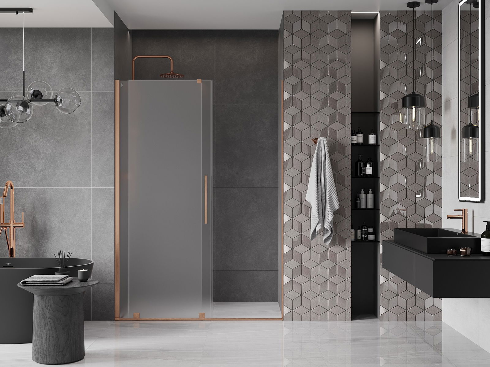 Mexen Velar porta doccia scorrevole 130 cm, ghiaccio, rame spazzolato - 871-130-000-31-65