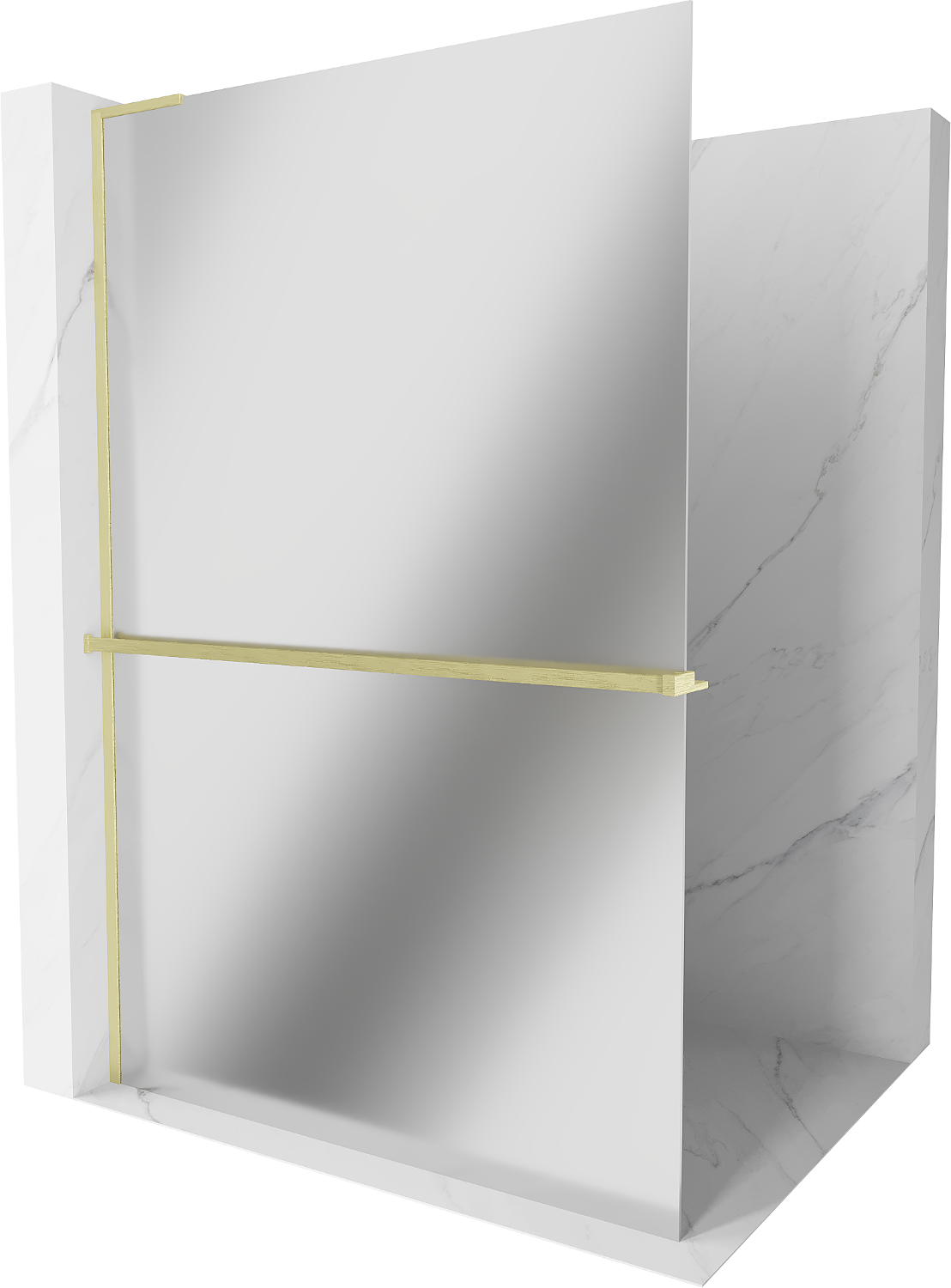 Mexen Kioto+ L parete doccia con mensola Walk-in 110 x 200 cm, specchio, oro spazzolato - 800-110-123-55-50