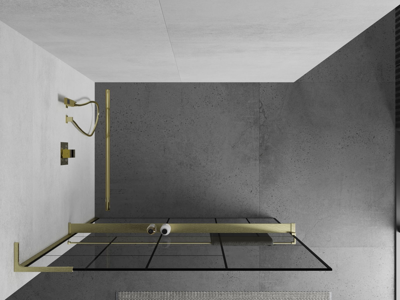 Mexen Kioto+ L parete doccia con mensola Walk-in 100 x 200 cm, motivo nero, oro spazzolato - 800-100-123-55-78