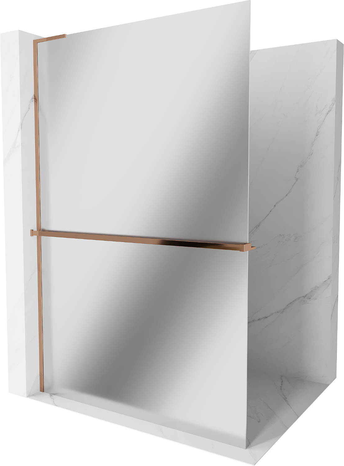 Mexen Kioto+ L parete doccia con mensola Walk-in 80 x 200 cm, specchio, oro rosa - 800-080-123-60-50
