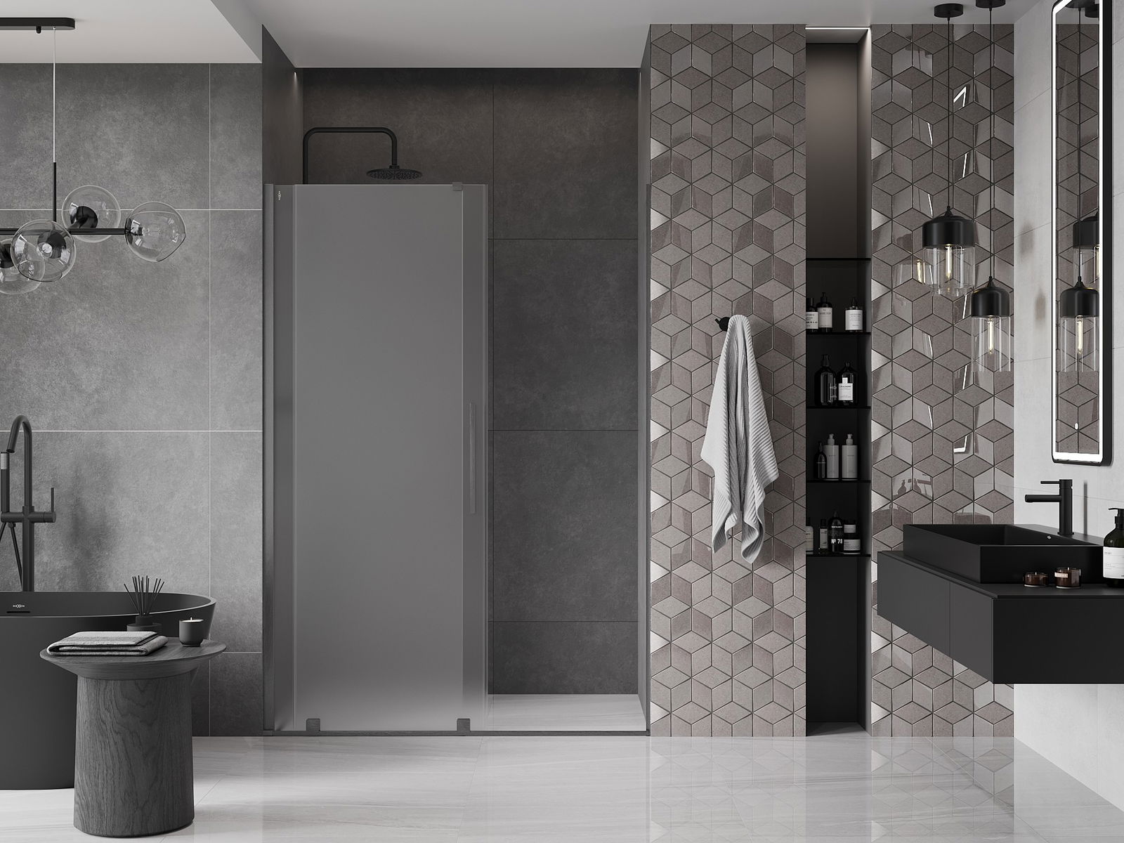 La comoda e pratica maniglia è realizzata in acciaio inossidabile. La forma alla moda unita alla finitura abbinata al colore dei profili conferisce all'intero un aspetto moderno e stiloso, evidenziando l'estetica di ogni bagno.