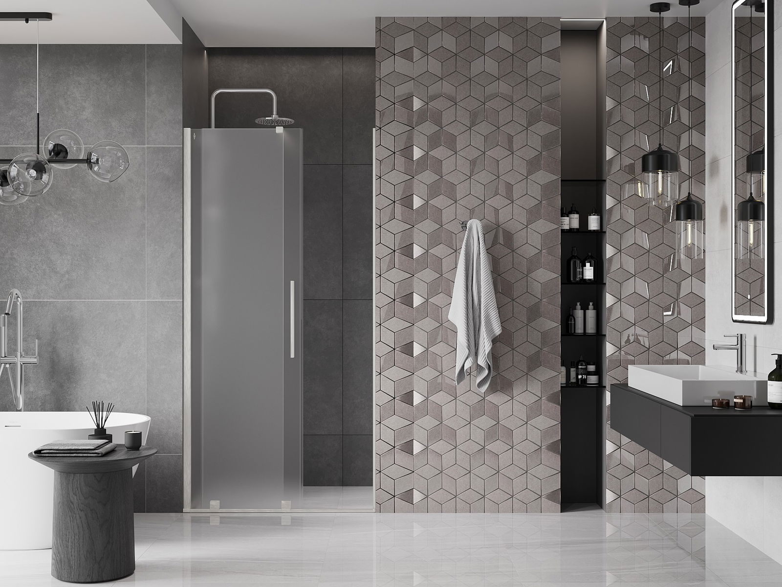 Il prodotto, a seconda delle esigenze, può essere installato sia sul piatto doccia che direttamente sul pavimento. Il metodo di installazione universale consente di adattare il prodotto a diversi tipi di bagni e configurazioni di spazio.