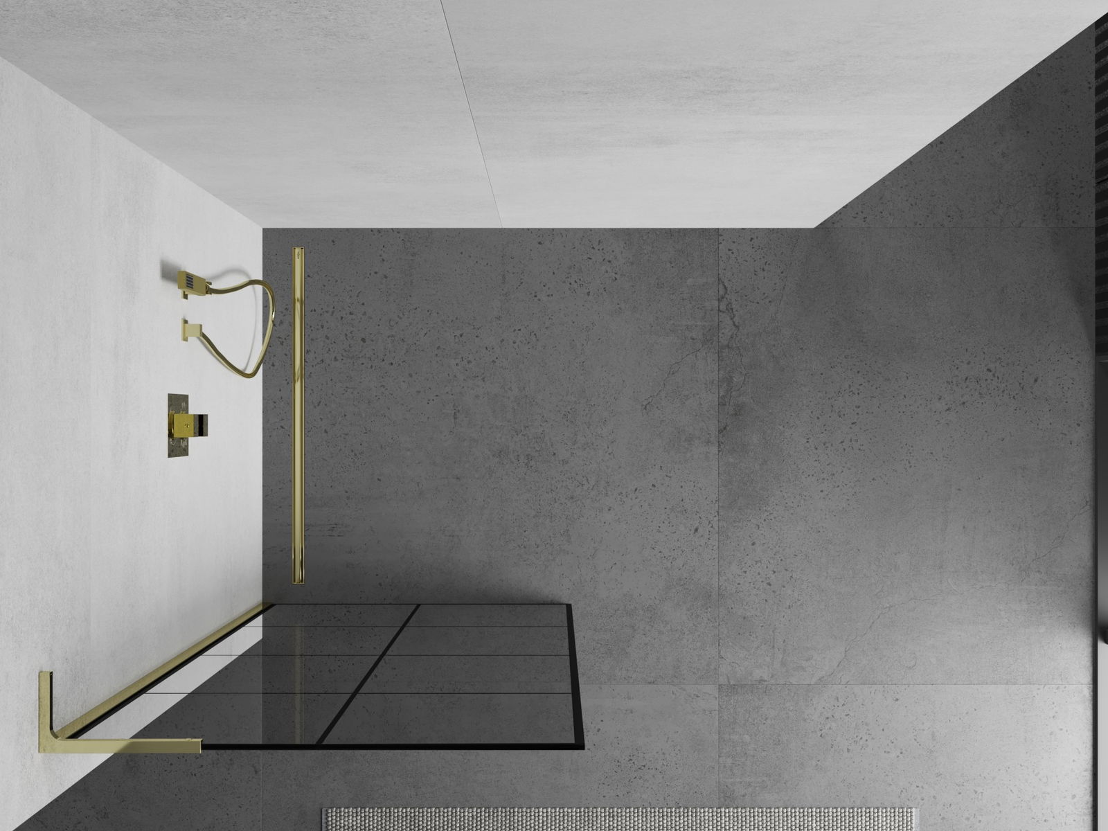 Mexen Kioto L pannello doccia Walk-in 90 x 200 cm, griglia nera, dorato - 800-090-103-50-77