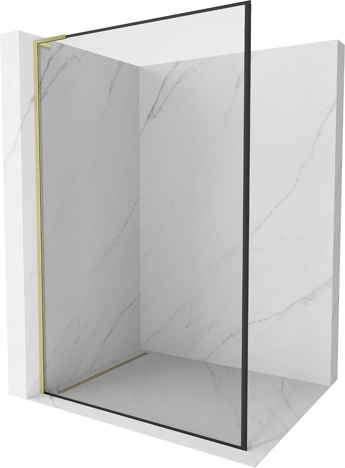 Mexen Kioto L Pannello doccia Walk-in 100 x 200 cm, cornice nera, oro spazzolato - 800-100-103-55-70