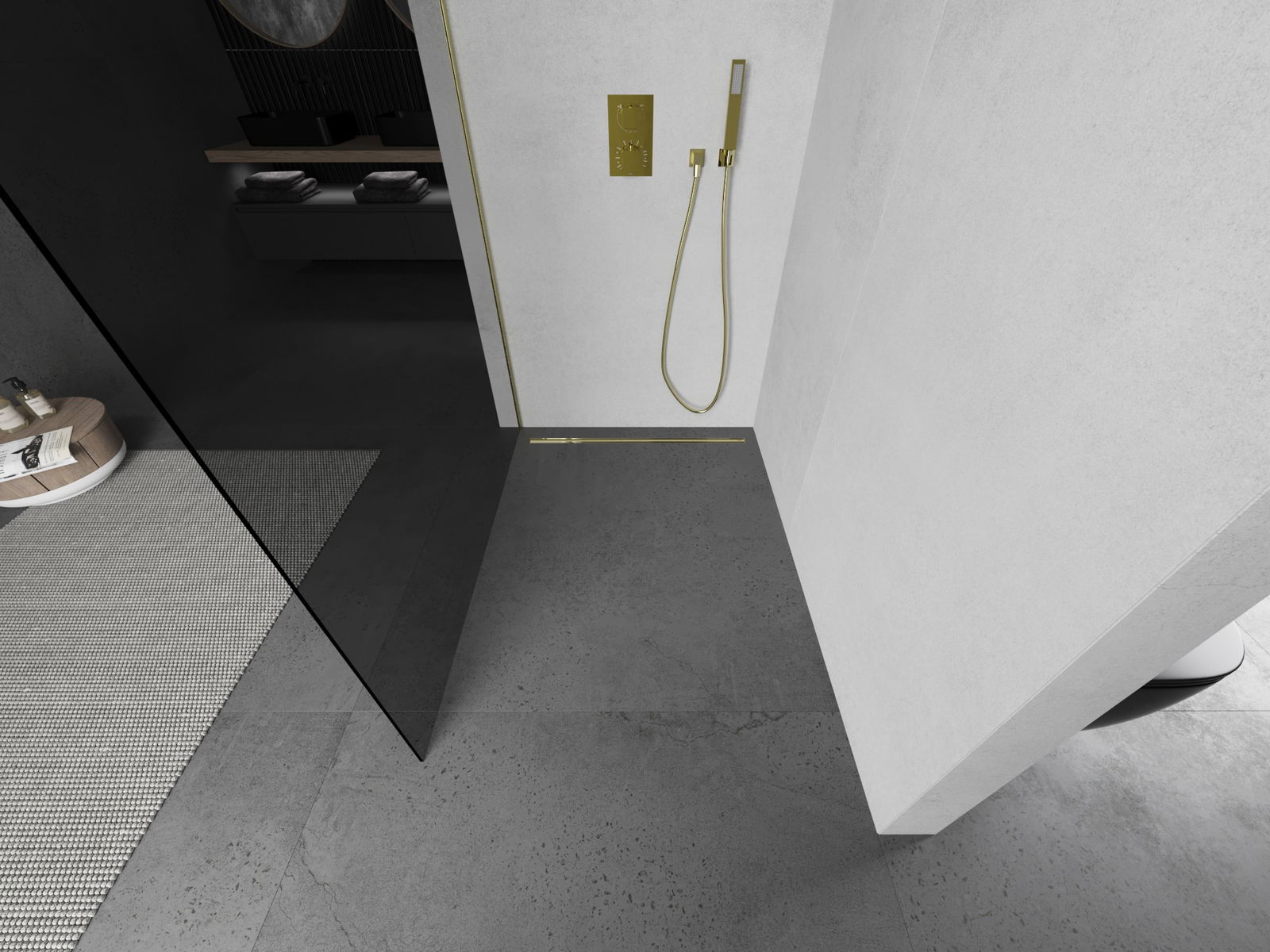 Mexen Kioto L parete doccia Walk-in 90 x 200 cm, grafite, oro spazzolato - 800-090-103-55-40