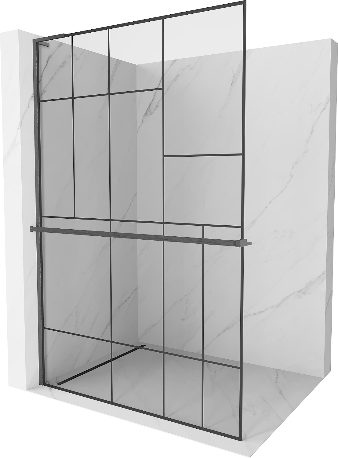 Mexen Kioto+ L parete doccia walk-in con mensola 110 x 200 cm, motivo nero, grigio canna di fucile spazzolato