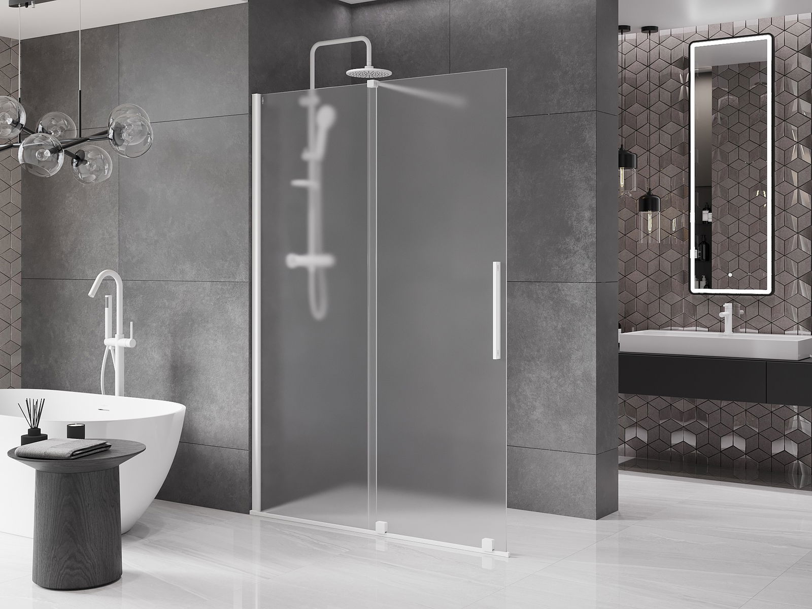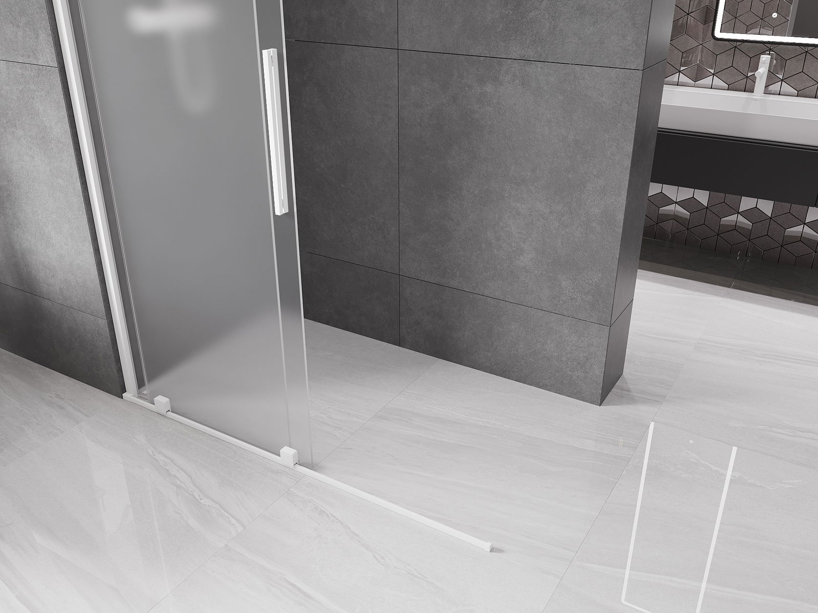 Mexen Velar parete doccia scorrevole Walk-in 160 x 200 cm, brina 8 mm, bianco - 871-160-000-33-20
