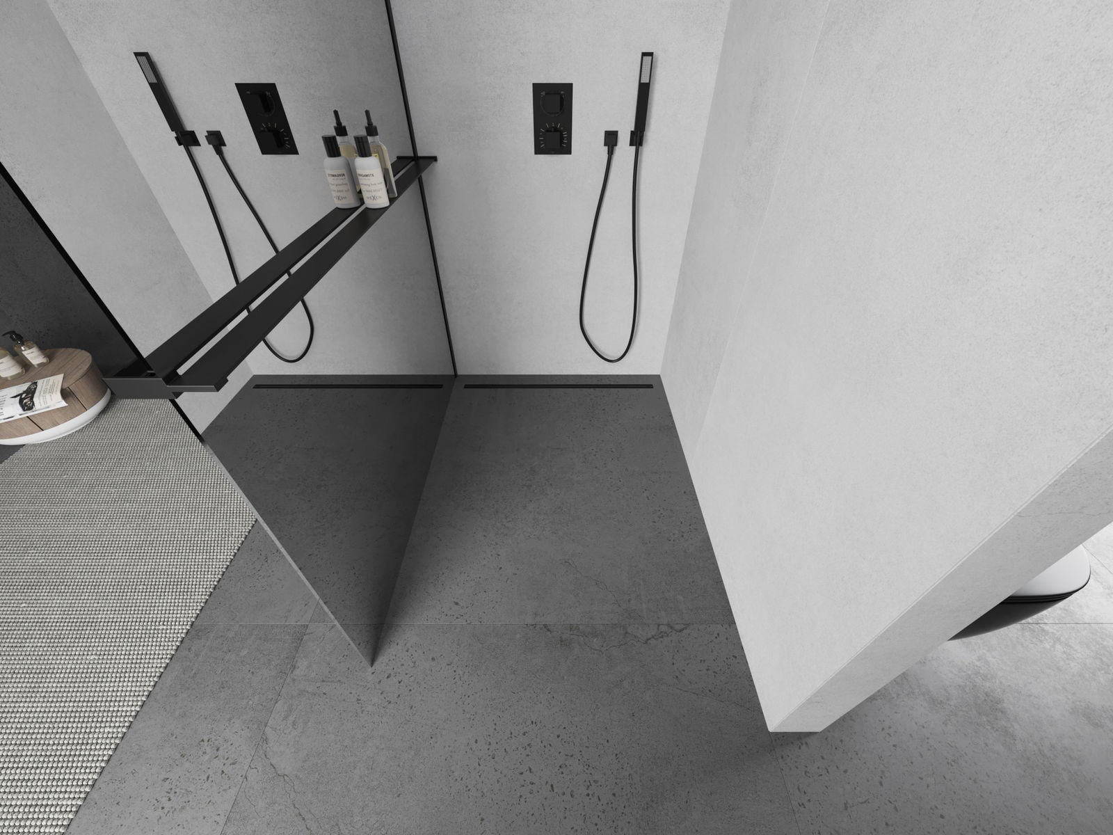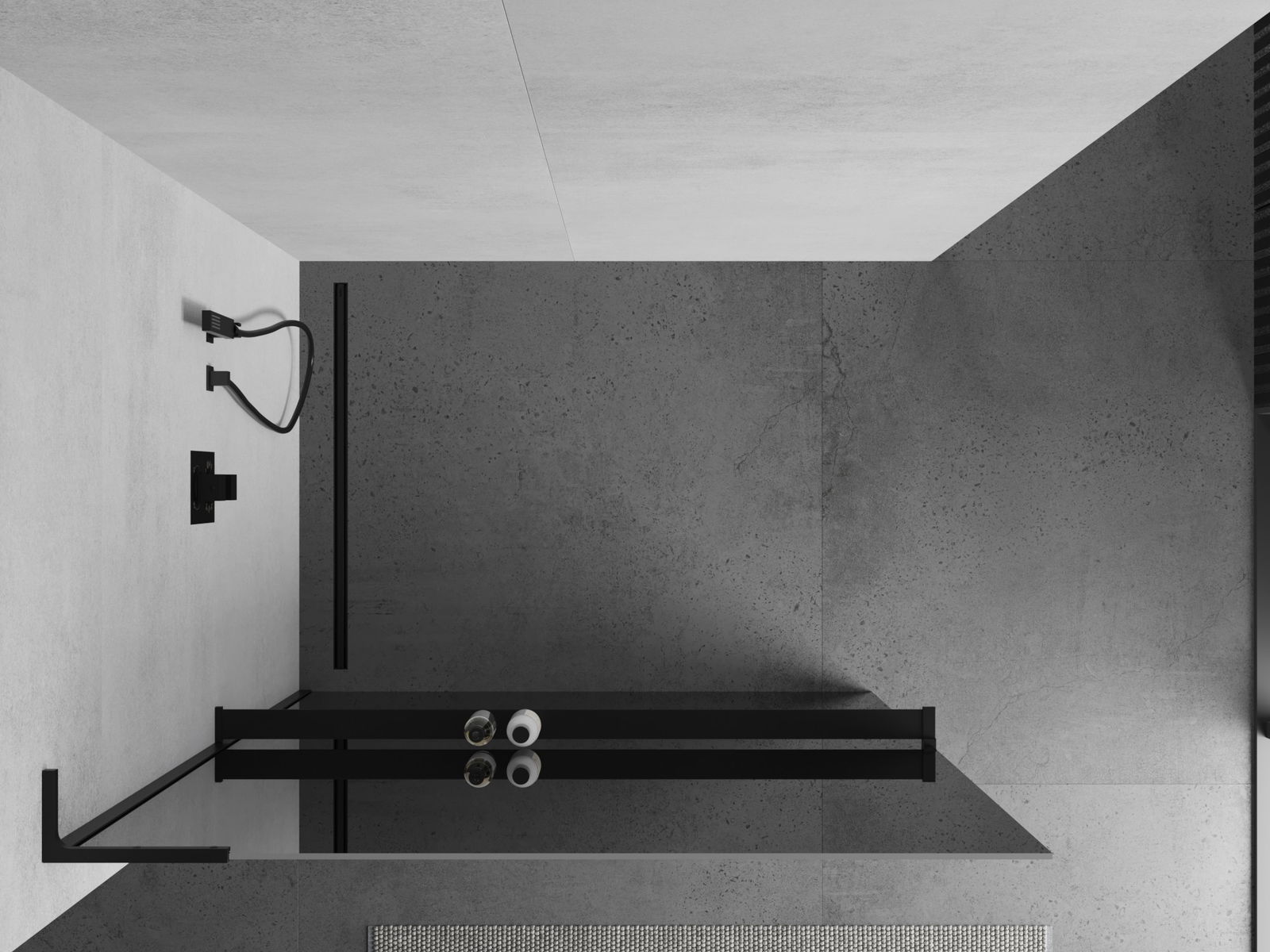 Mexen Kioto+ L parete doccia con mensola Walk-in 80 x 200 cm, specchio, nero - 800-080-123-70-50