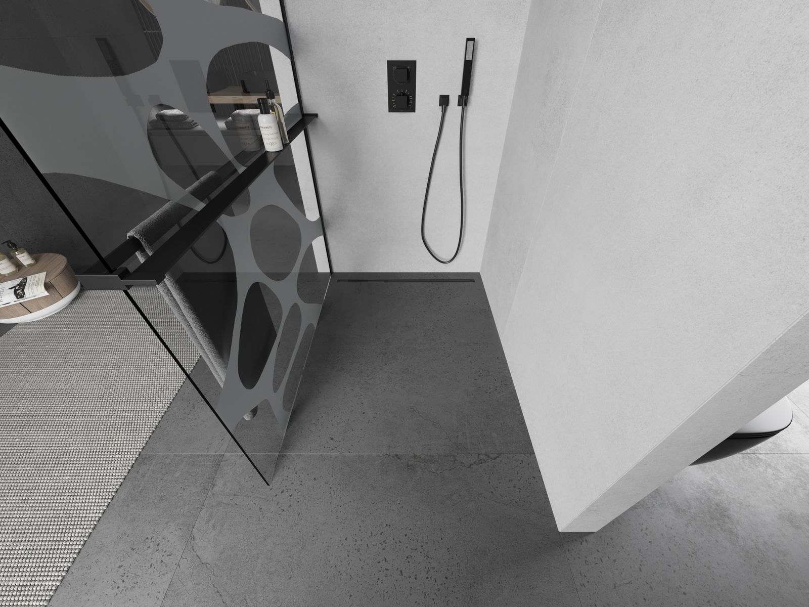 Mexen Kioto+ L parete doccia con mensola Walk-in 90 x 200 cm, onda bianca, nero - 800-090-123-70-97