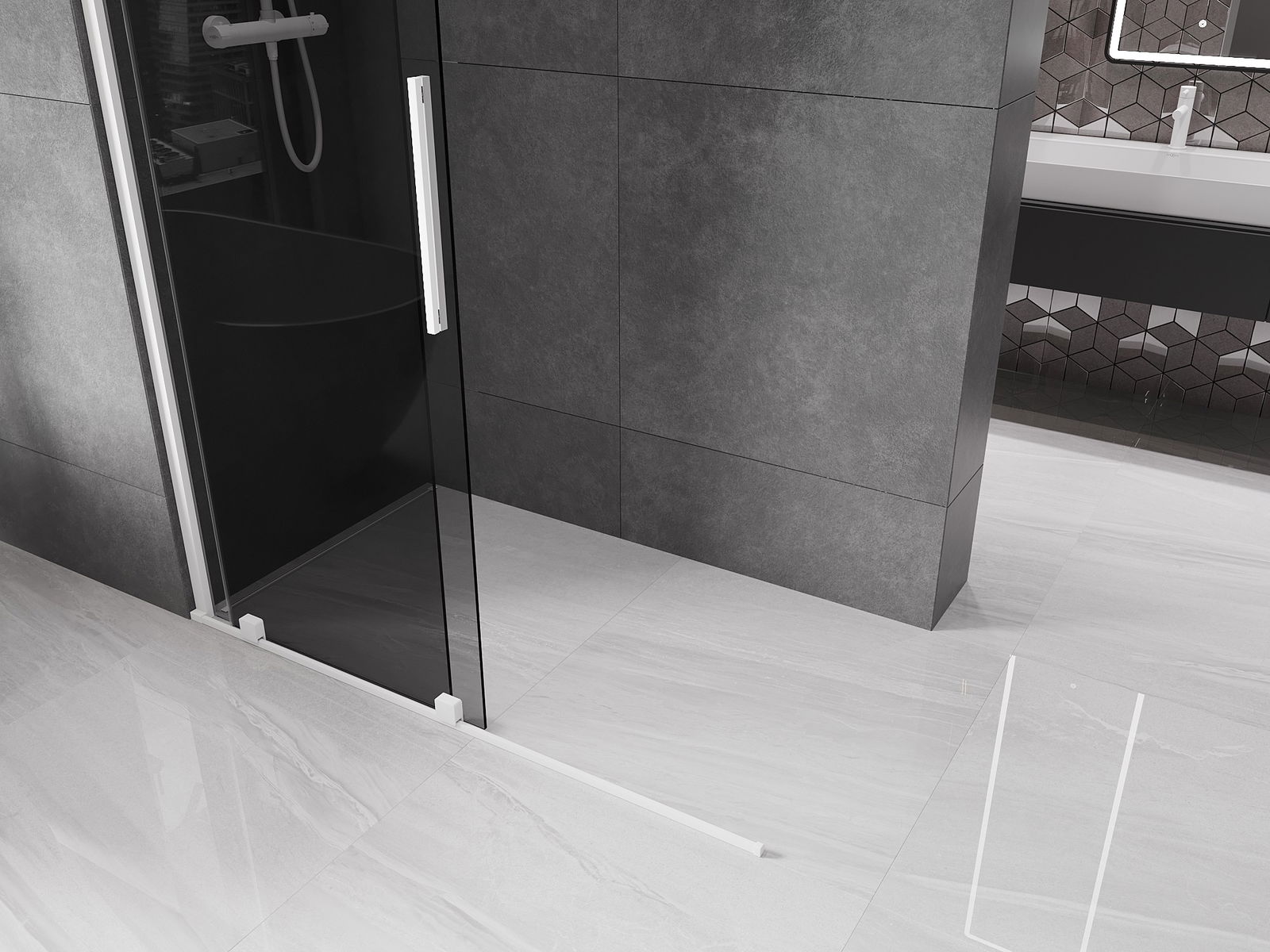 Mexen Velar parete doccia scorrevole Walk-in 130 x 200 cm, grafite 8 mm, bianca - 871-130-000-43-20