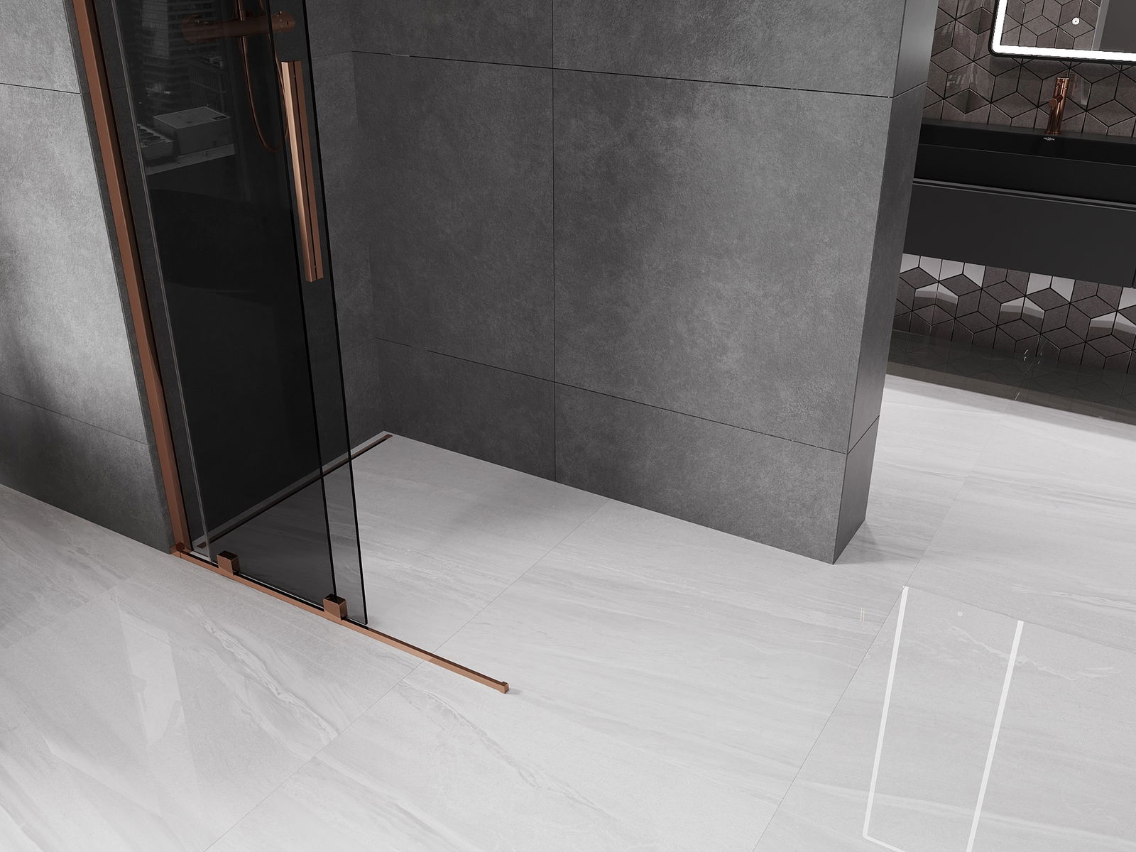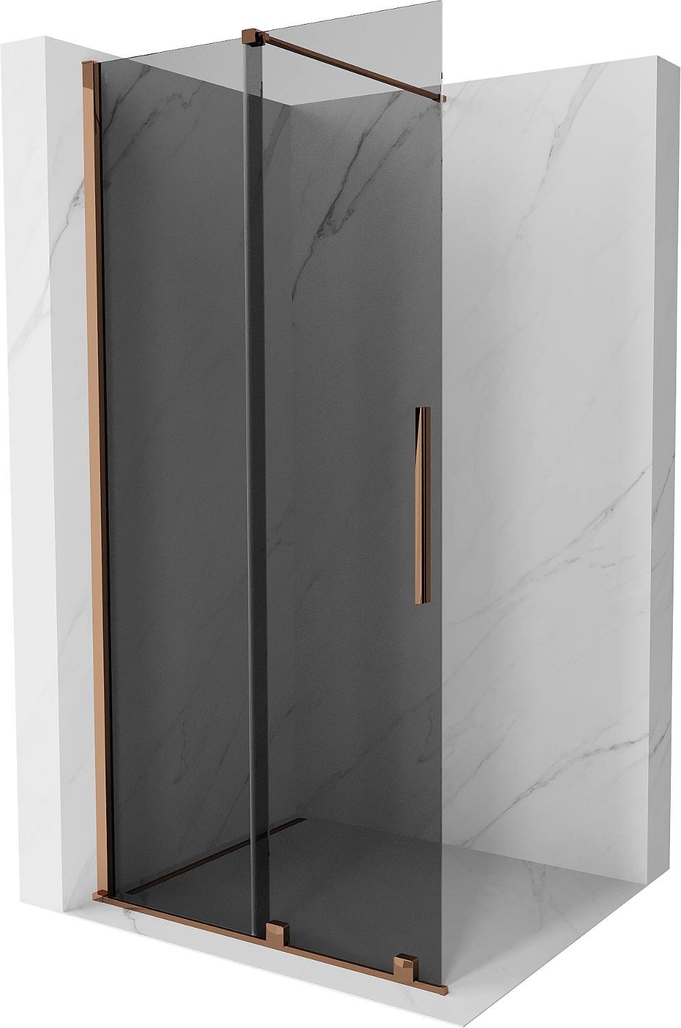 Mexen Velar parete doccia scorrevole Walk-in 90 x 200 cm, grafite 8 mm, oro rosa - 871-090-000-43-60