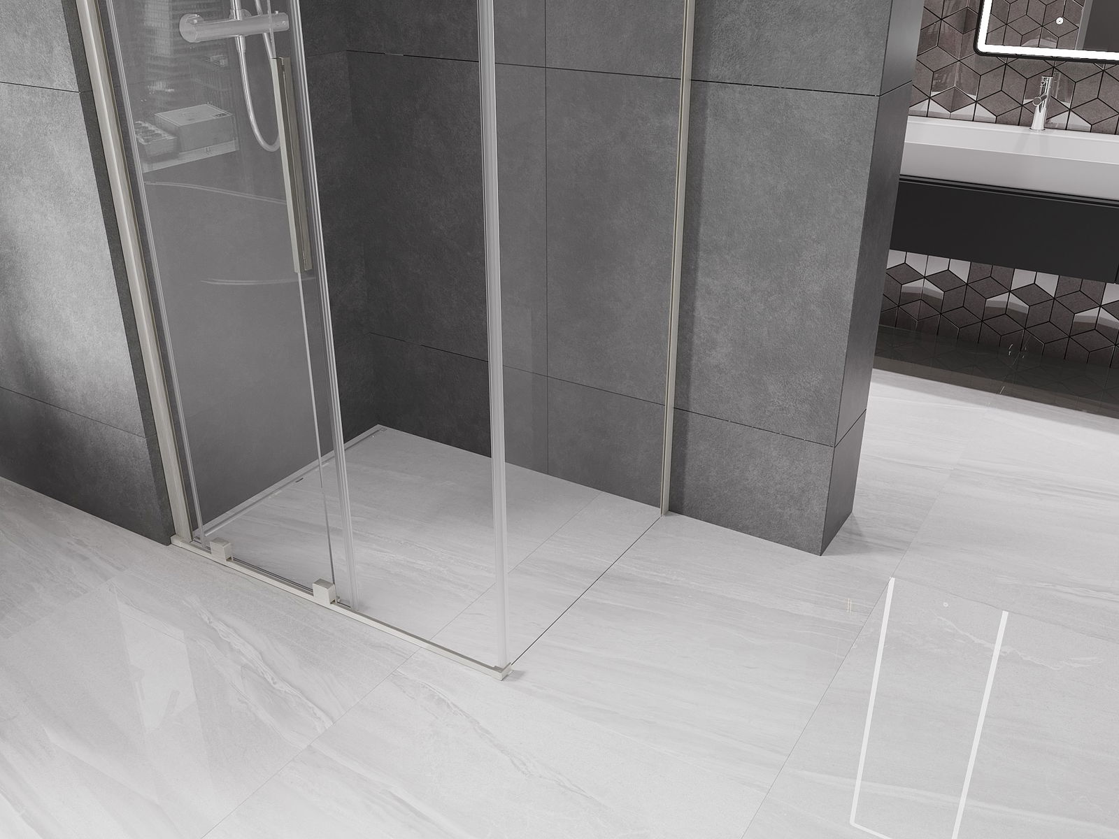 Grazie all'uso di un sistema di montaggio universale, le porte della doccia possono essere montate a destra o a sinistra, a seconda delle esigenze. In questo modo puoi progettare facilmente una doccia adatta allo spazio del bagno.
