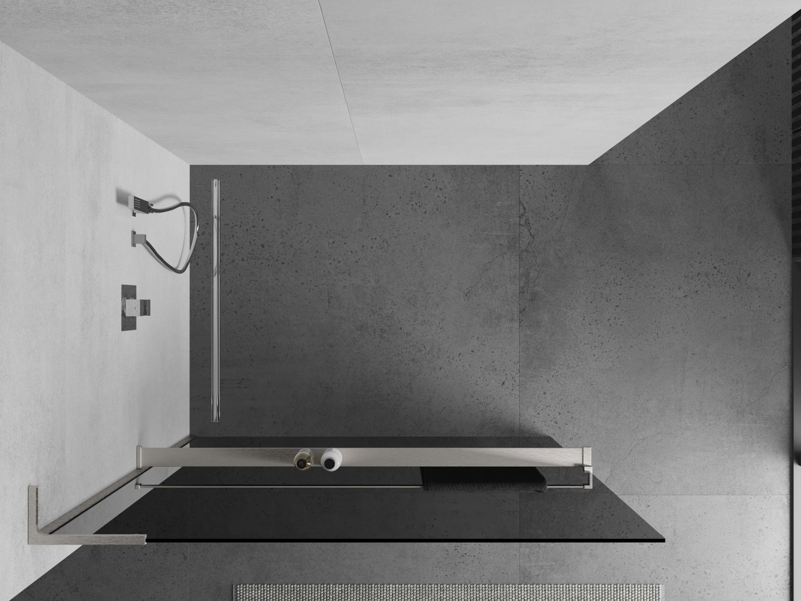 Mexen Kioto+ L pannello doccia con mensola Walk-in 110 x 200 cm, grafite, nichel spazzolato - 800-110-123-97-40