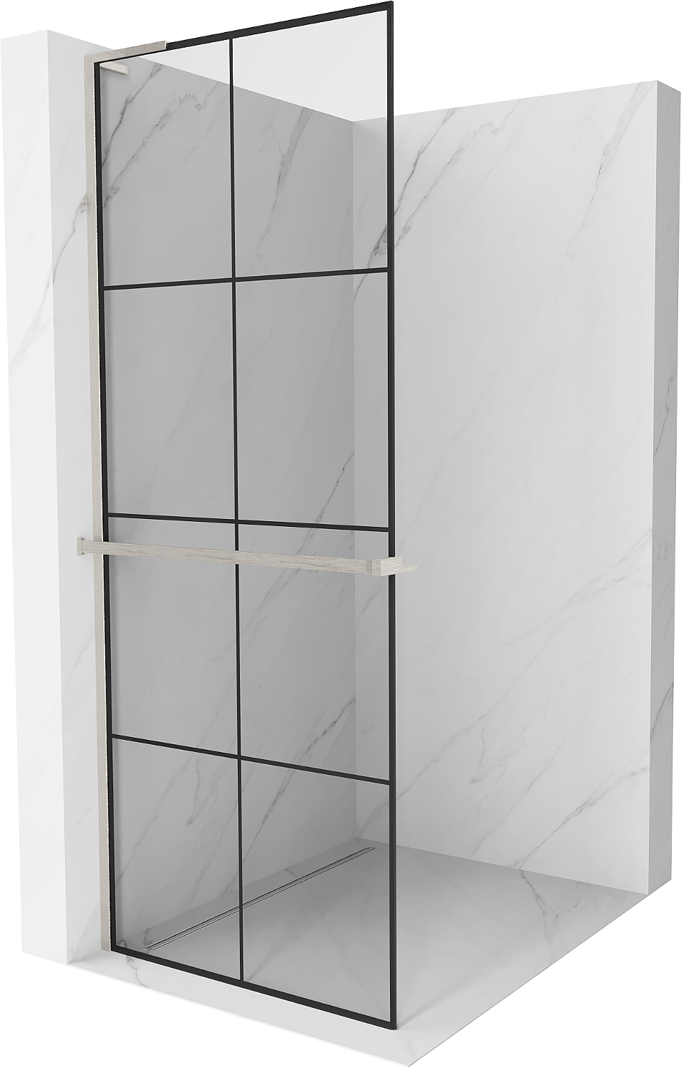 Mexen Kioto+ L parete doccia con mensola Walk-in 70 x 200 cm, griglia nera, nichel spazzolato - 800-070-123-97-77