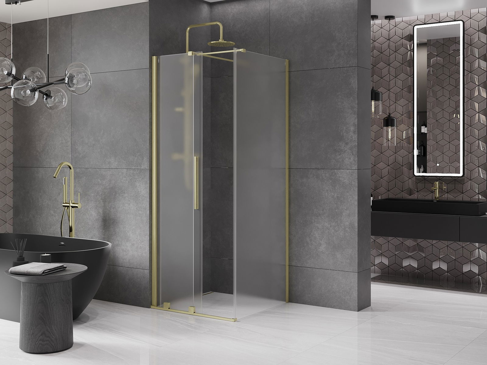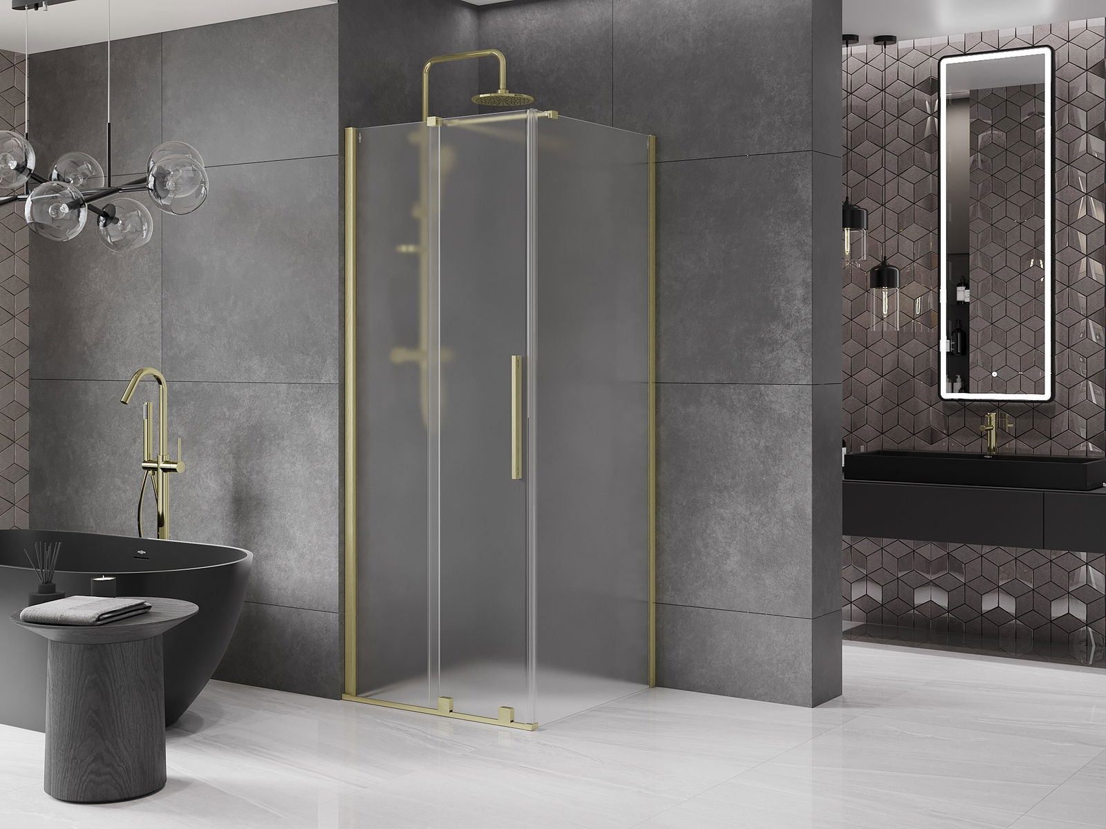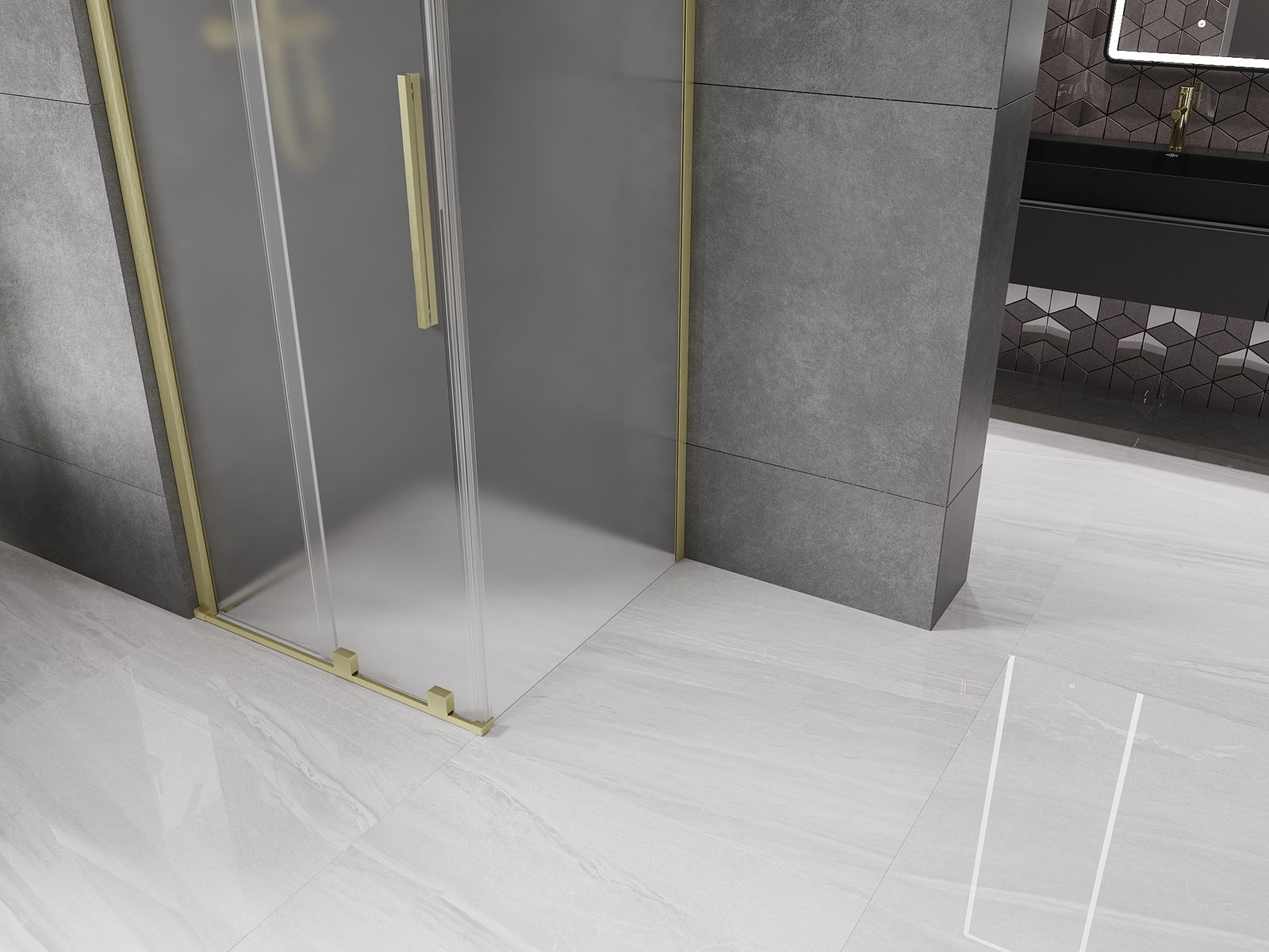 Mexen Velar cabina doccia scorrevole 100 x 100 cm, ghiaccio, oro spazzolato - 871-100-100-31-55