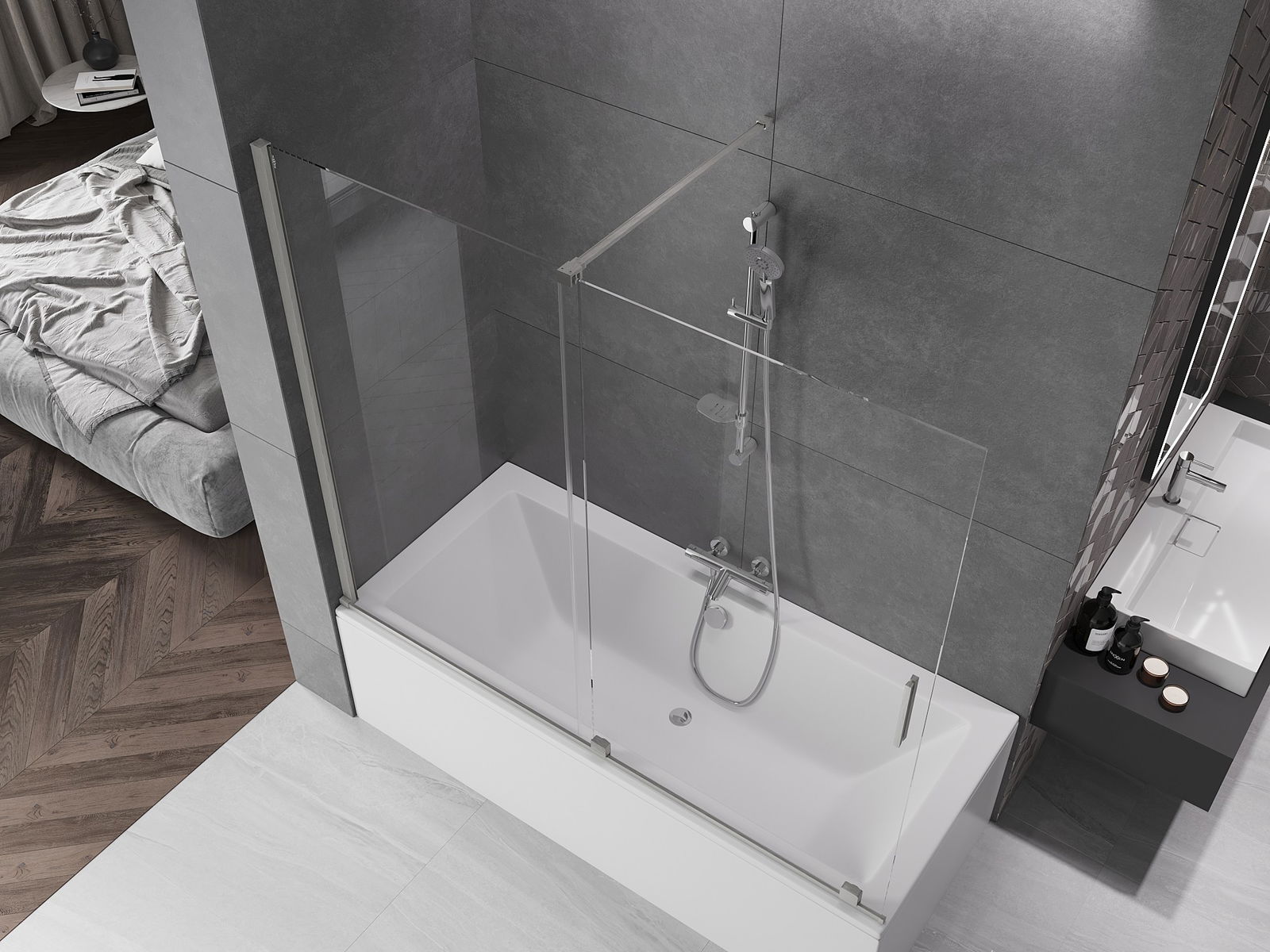 Mexen Velar paravento per vasca da bagno a 2 ante scorrevoli 180 x 150 cm, trasparente, nichel spazzolato - 896-180-000-01-97