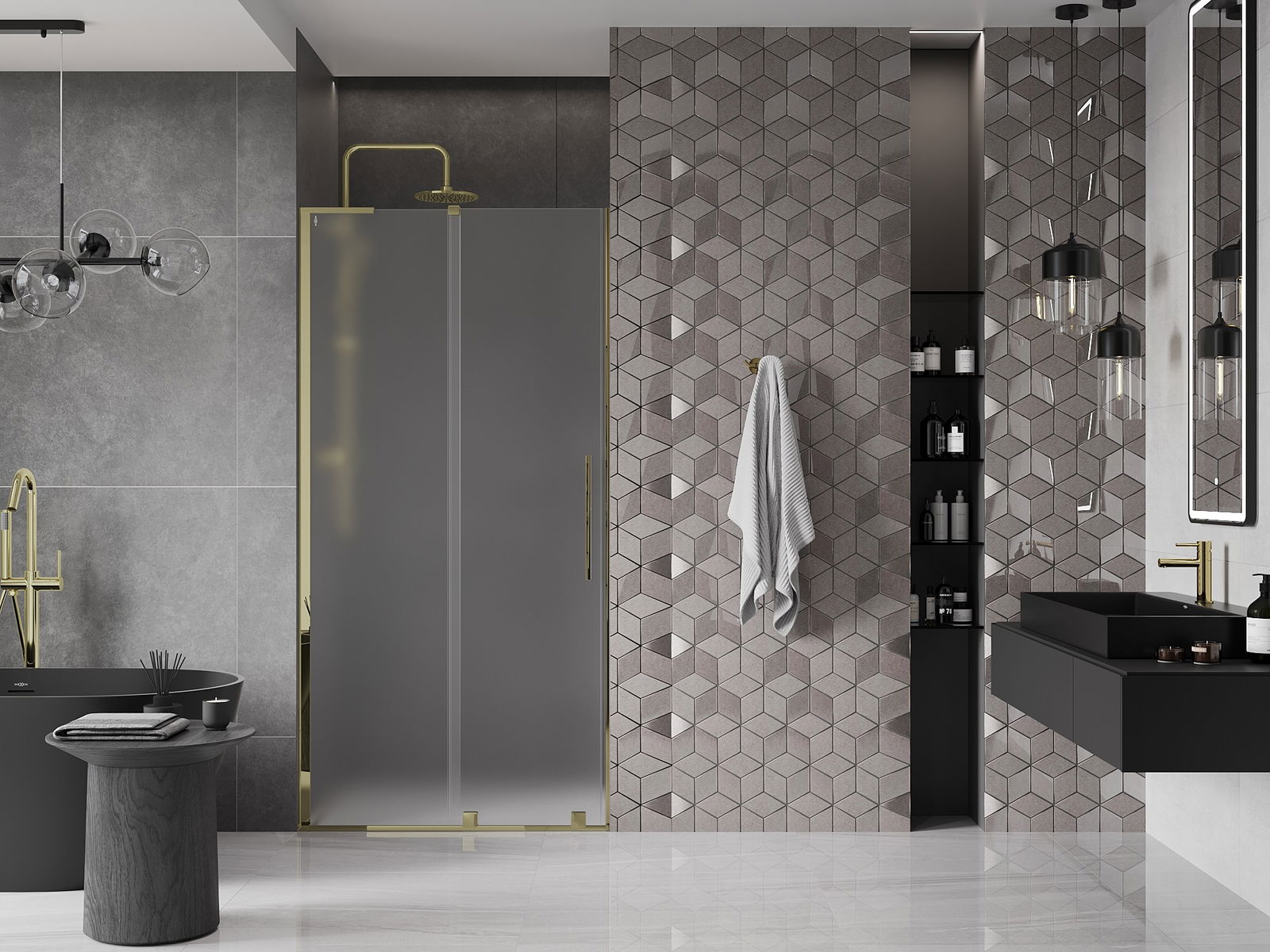 Il prodotto, a seconda delle esigenze, può essere installato sia sul piatto doccia che direttamente sul pavimento. Il metodo di installazione universale consente di adattare il prodotto a diversi tipi di bagni e configurazioni di spazio.