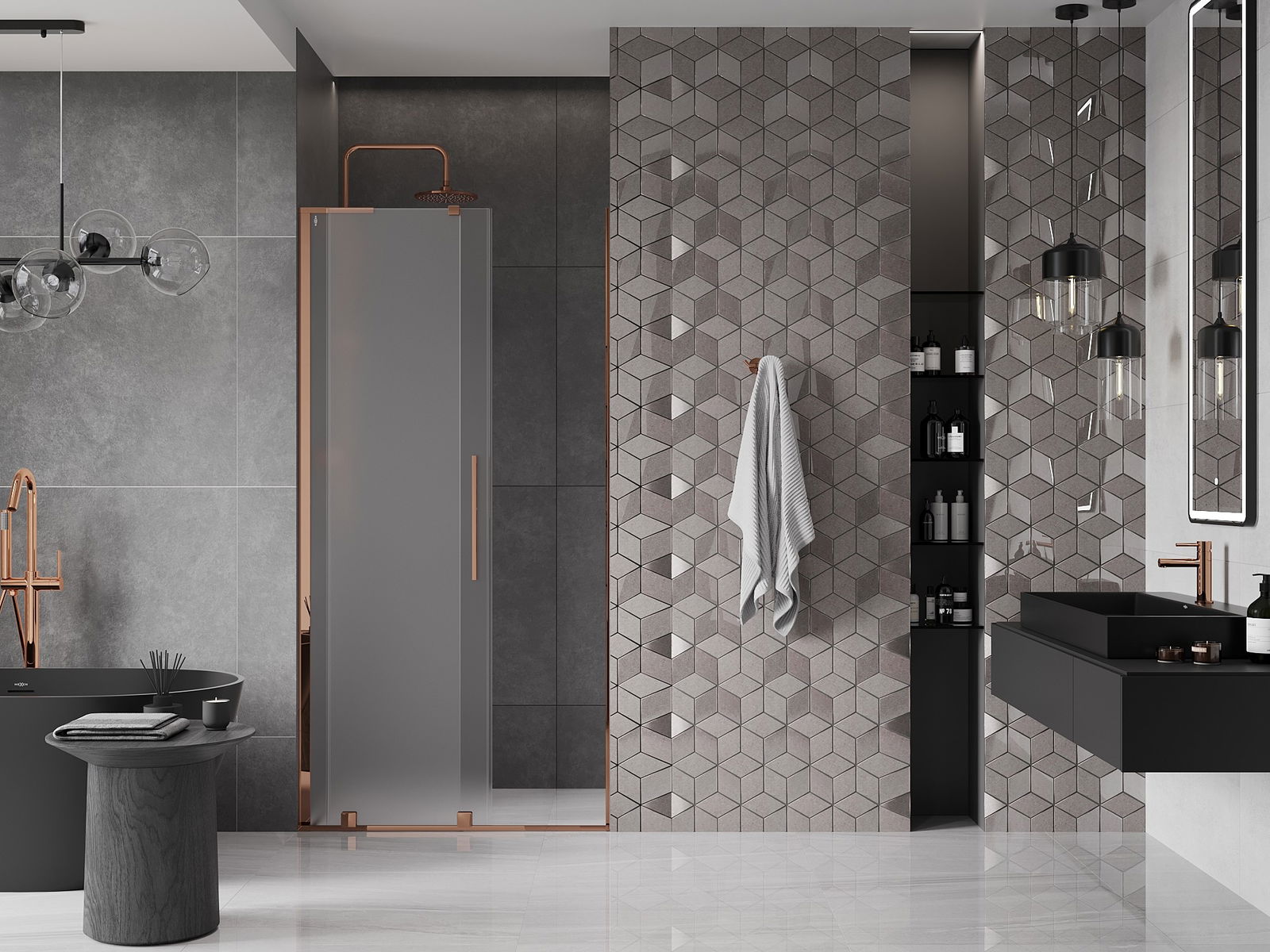 Mexen Velar L porta doccia scorrevole 100 cm, ghiacciata, oro rosa - 871-100-003-31-60