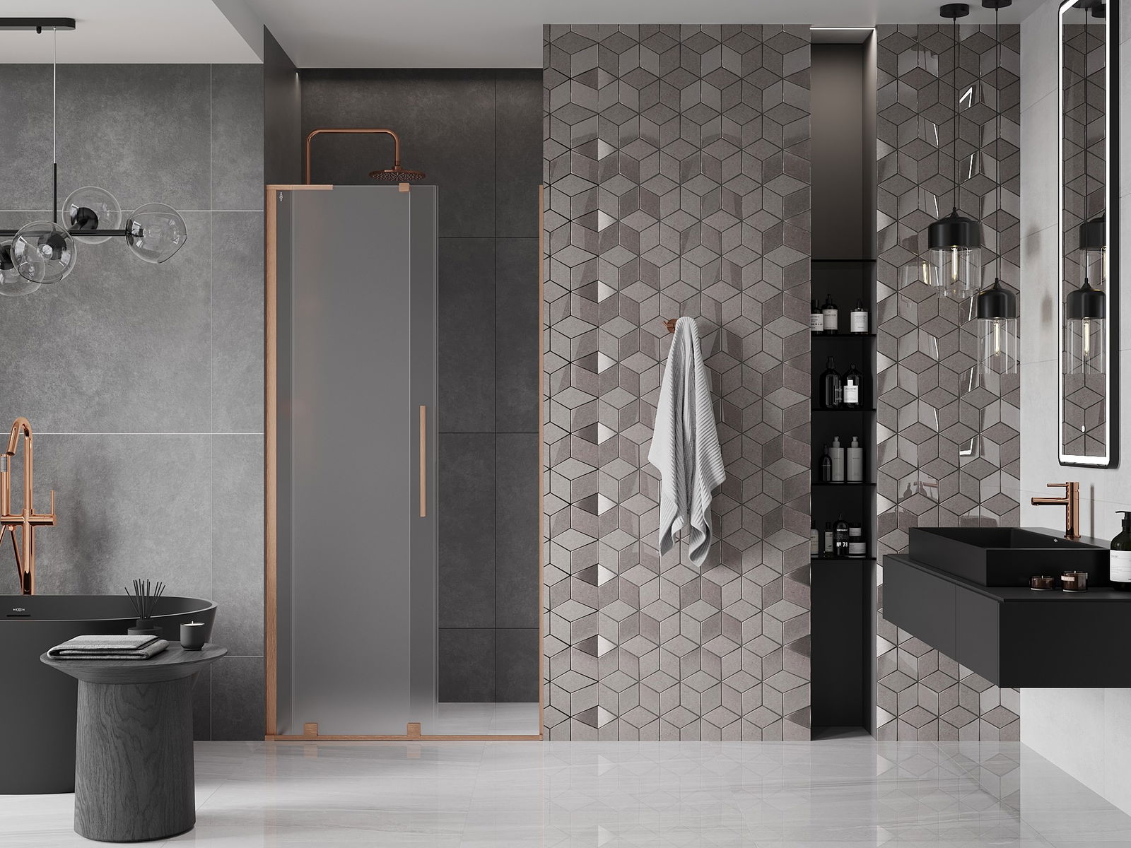 Mexen Velar L porta doccia scorrevole 110 cm, brina, rame spazzolato - 871-110-003-31-65