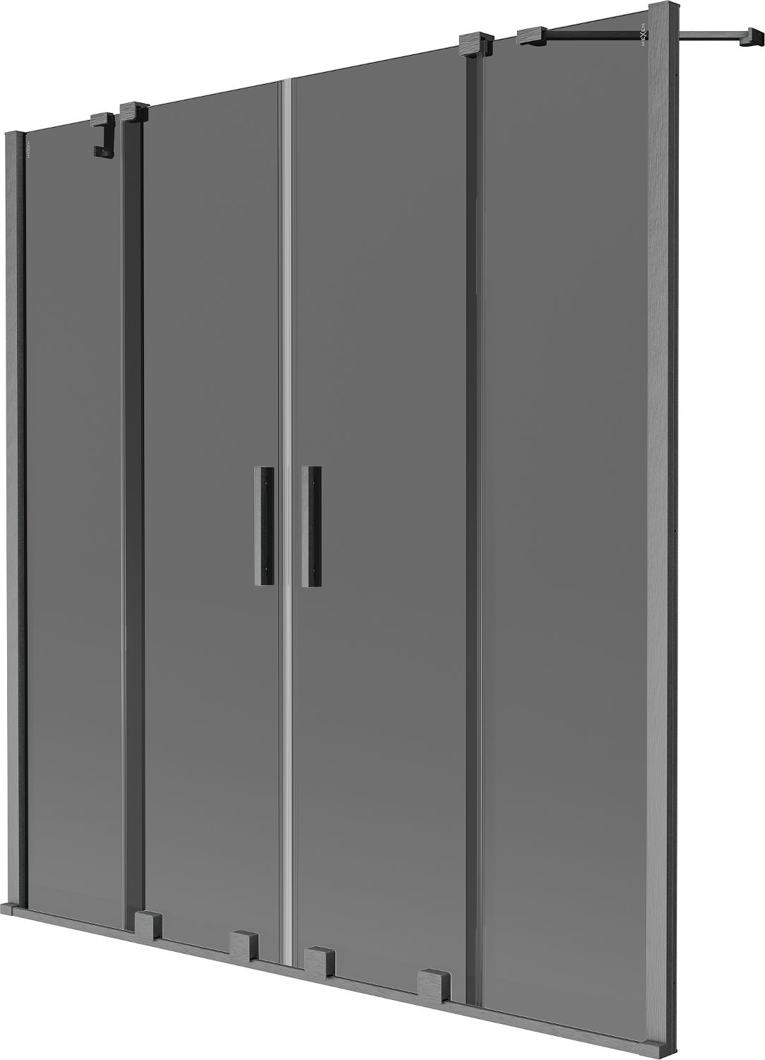 Mexen Velar Duo paravento per vasca 2 ante scorrevoli 140 x 150 cm, grafite, grigio canna di fucile spazzolato