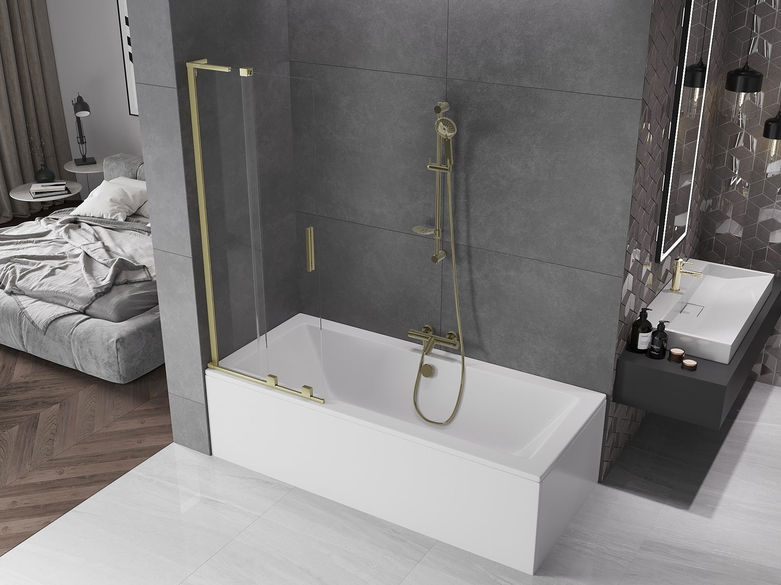 Mexen Velar L paratia per vasca da bagno scorrevole a 2 ante 70 x 150 cm, trasparente, oro spazzolato - 896-070-003-01-55