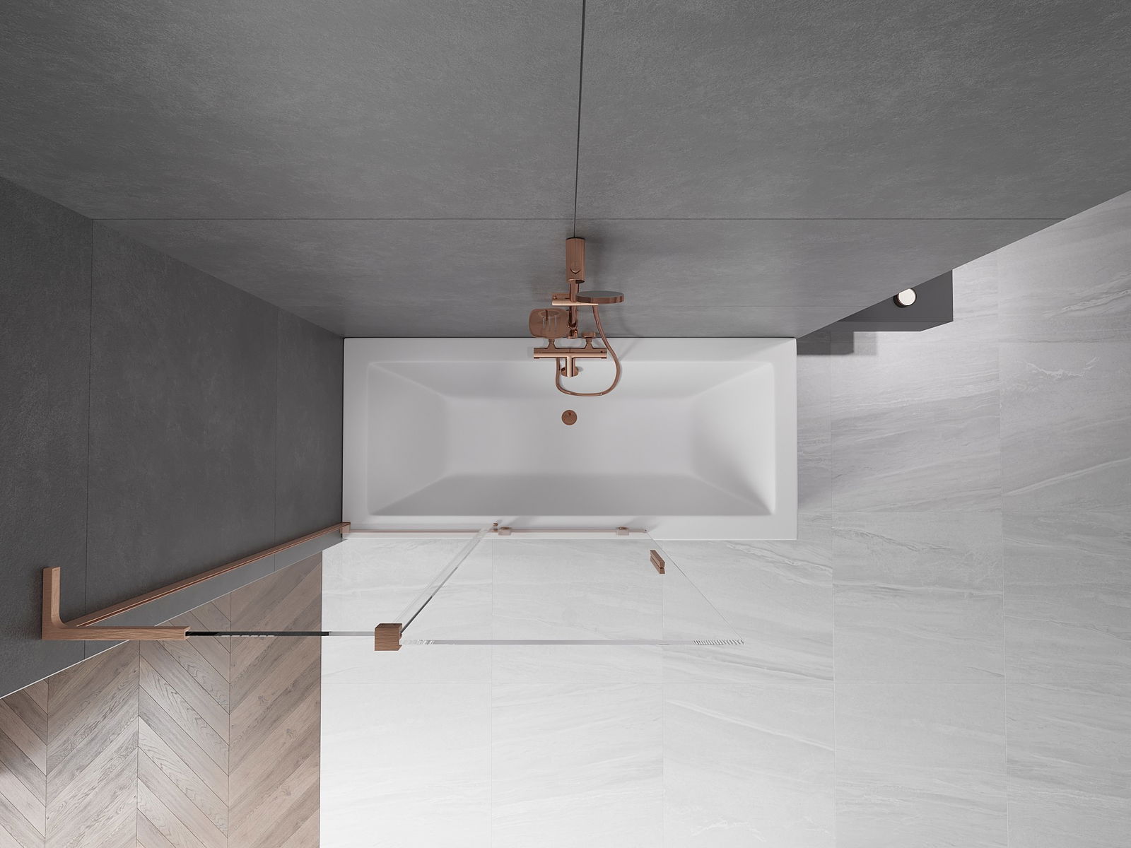 Mexen Velar L paratia doccia a 2 ante scorrevoli 120 x 150 cm, trasparente, rame spazzolato - 896-120-003-01-65
