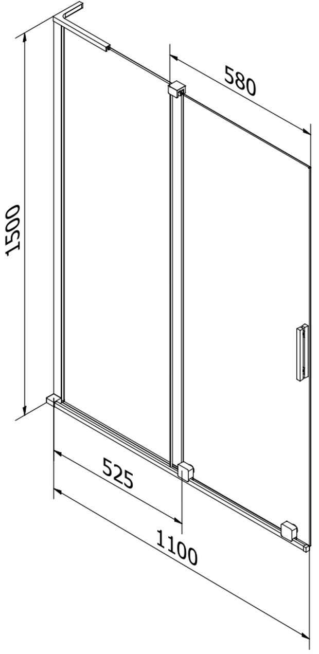 Mexen Velar L paratia vasca da bagno a 2 ante scorrevole 110 x 150 cm, smerigliato, cromo - 896-110-003-31-01