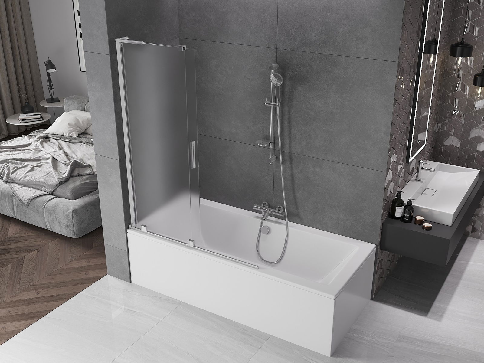 Grazie all'uso di un sistema di montaggio universale, il paravento può essere montato a destra o a sinistra, a seconda delle necessità. In questo modo puoi progettare facilmente una doccia adatta allo spazio del bagno.