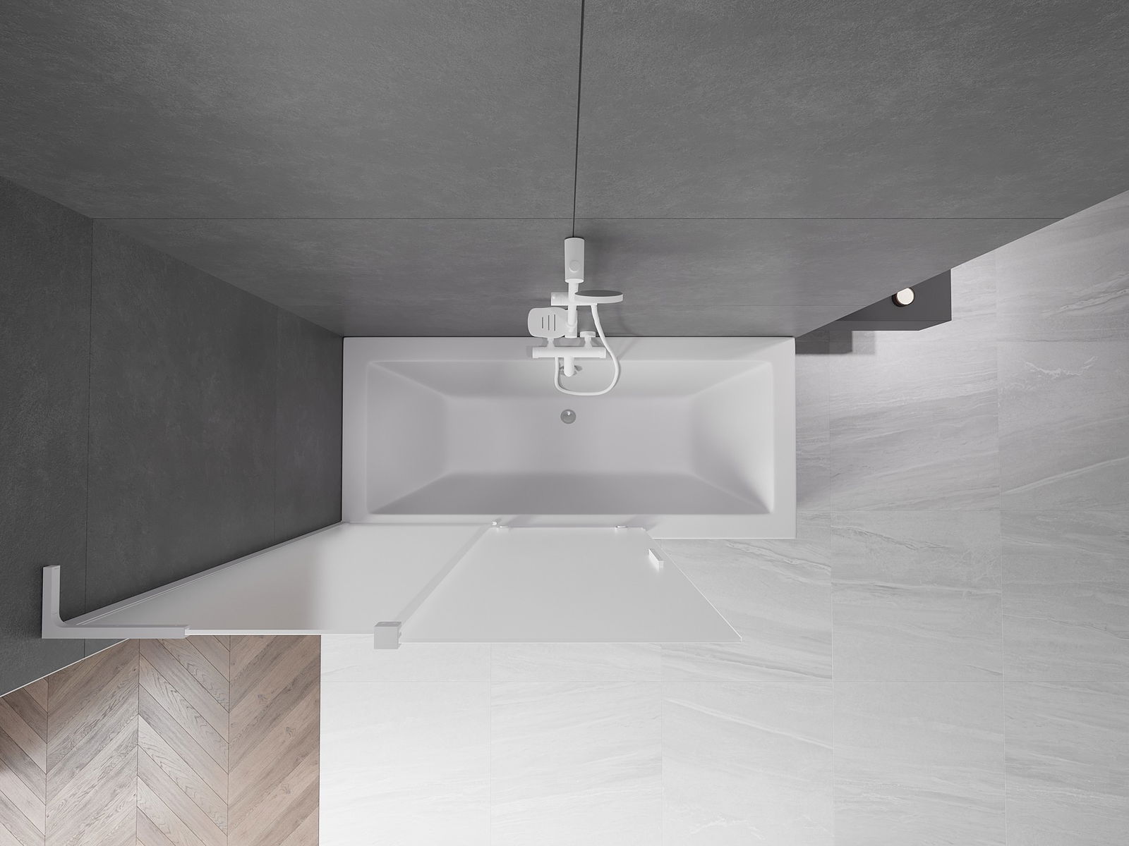 Mexen Velar L paravento vasca da bagno 2 ante scorrevoli 120 x 150 cm, smerigliato, bianco - 896-120-003-31-20