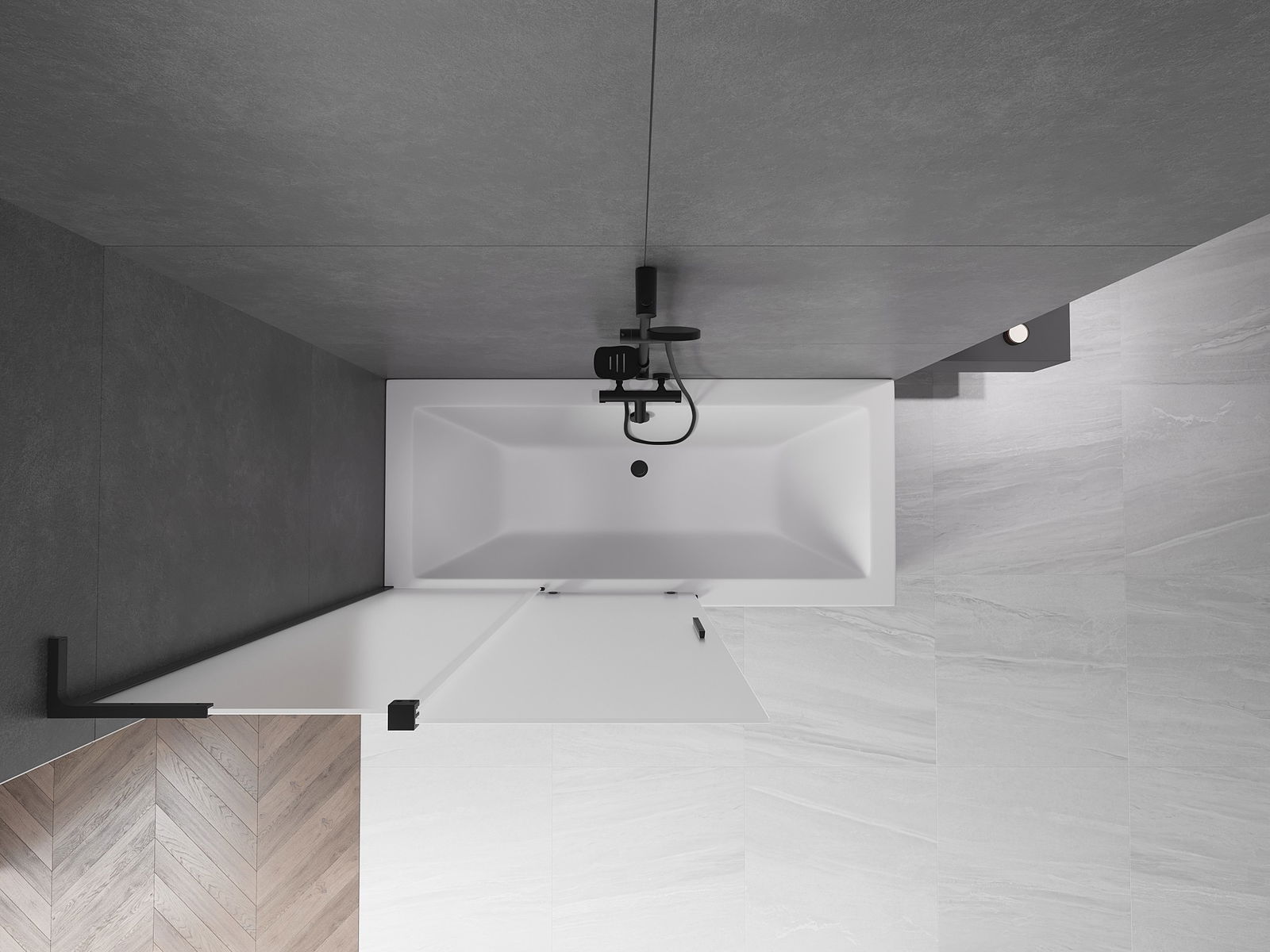 Mexen Velar L paratia per vasca da bagno a 2 ante scorrevoli 110 x 150 cm, brina, nero - 896-110-003-31-70