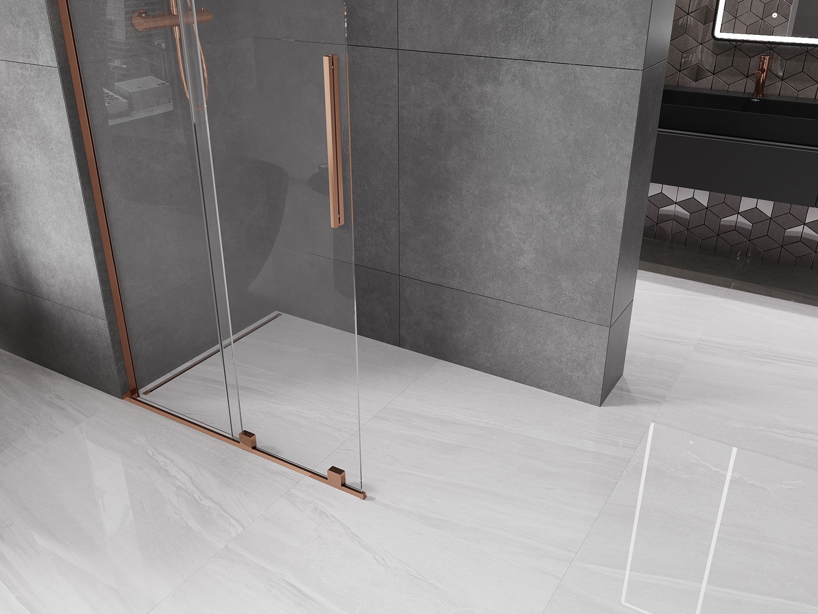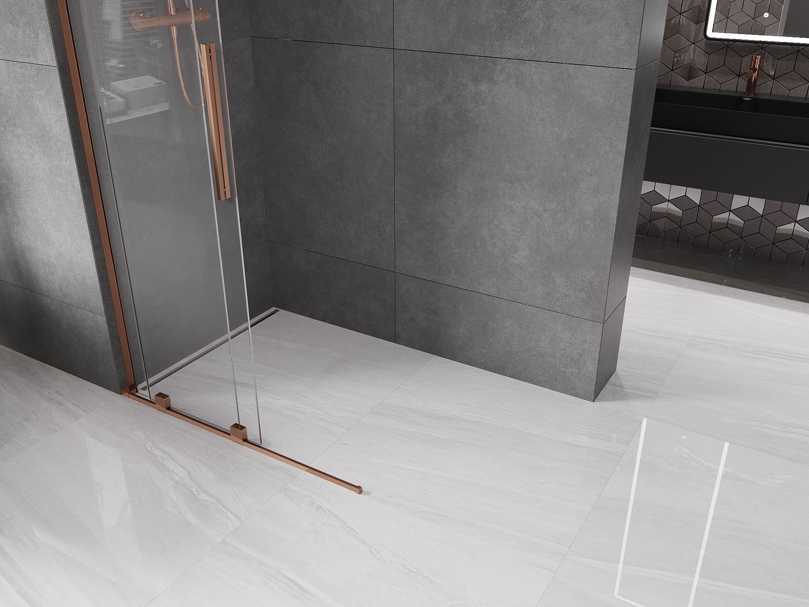 Mexen Velar L Parete doccia scorrevole Walk-in 90 x 200 cm, trasparente 8 mm, oro rosa - 871-090-003-03-60