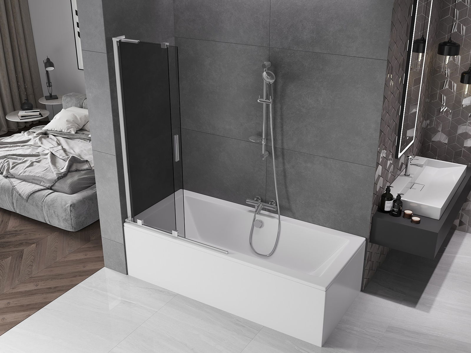 Mexen Velar L paratia per vasca da bagno a 2 ante scorrevoli 100 x 150 cm, grafite, cromo - 896-100-003-41-01