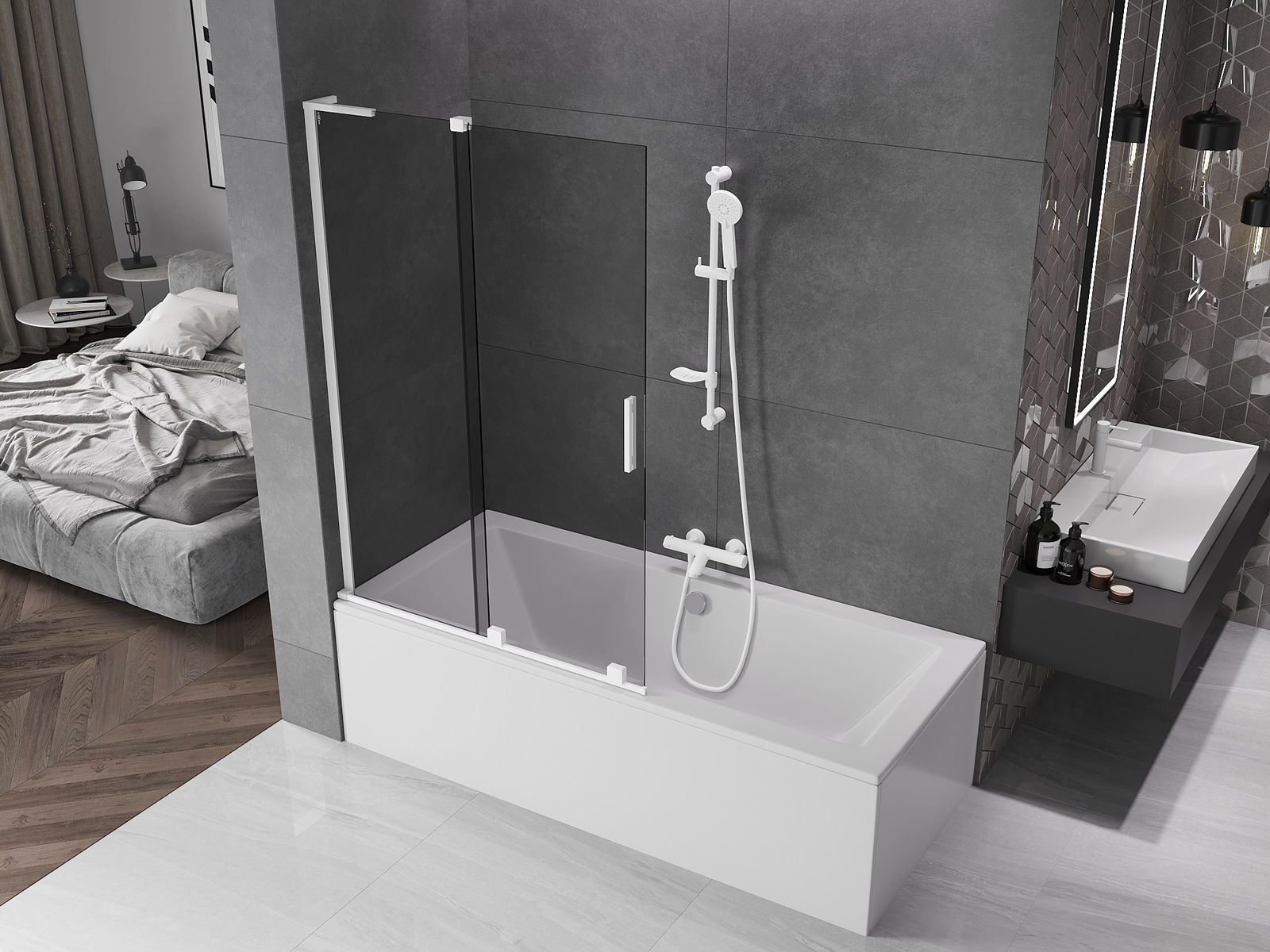 Mexen Velar L paratia vasca da bagno scorrevole a 2 ante 110 x 150 cm, grafite, bianco - 896-110-003-41-20