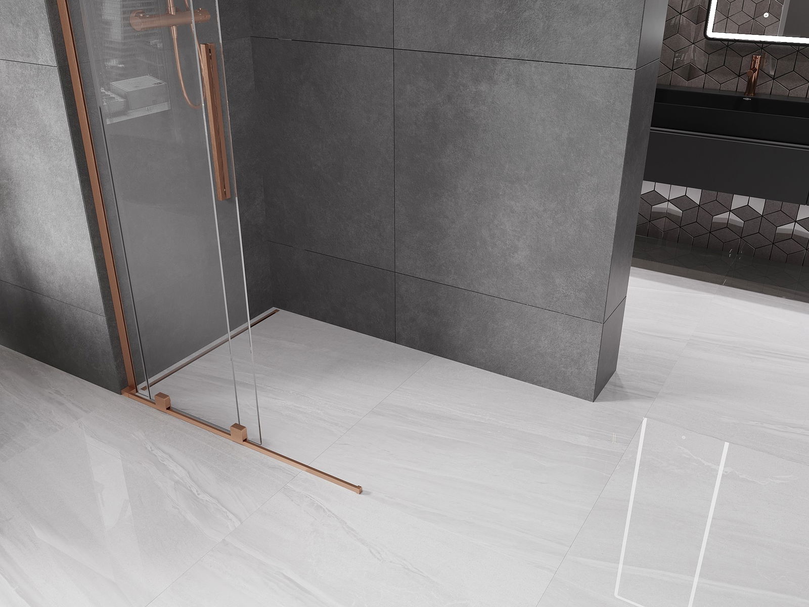 Mexen Velar L Parete doccia scorrevole Walk-in 120 x 200 cm, trasparente 8 mm, rame spazzolato - 871-120-003-03-65