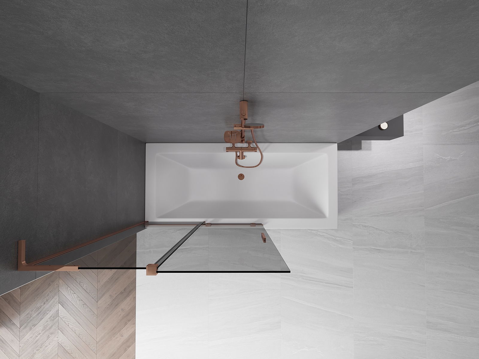 Mexen Velar L paratia per vasca da bagno 2 ante scorrevoli 110 x 150 cm, grafite, oro rosa - 896-110-003-41-60