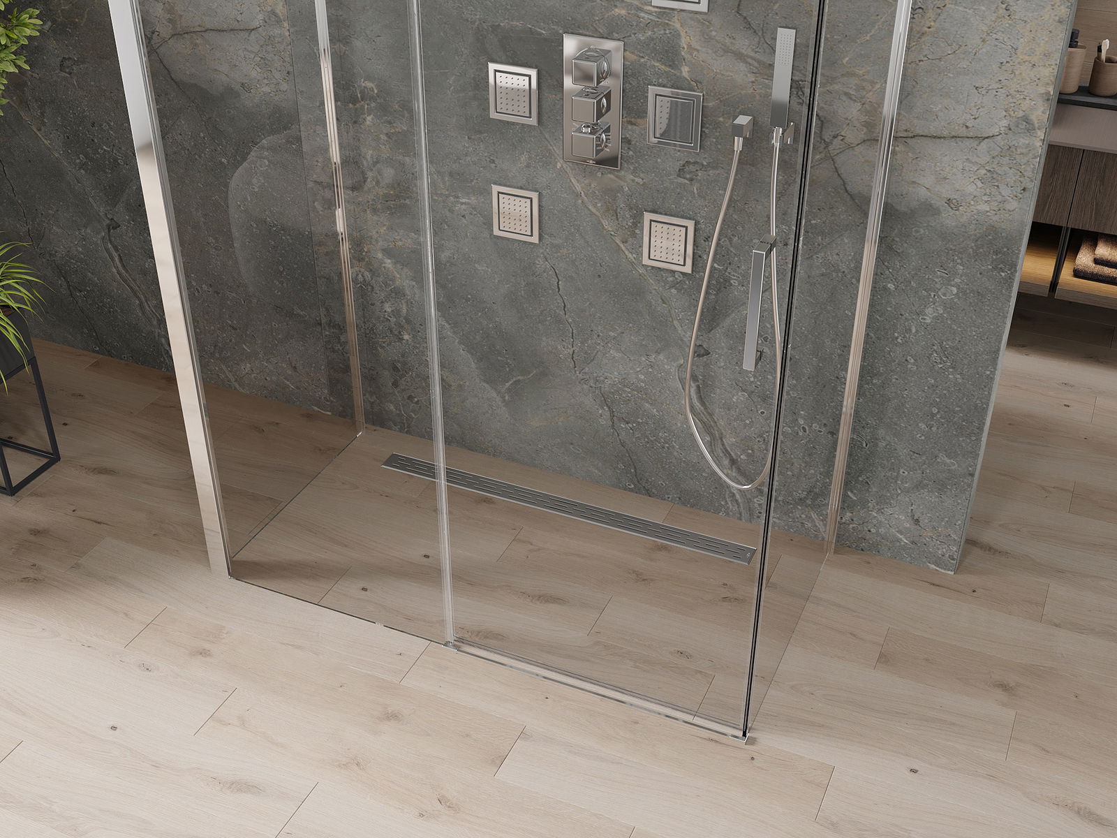 Grazie all'utilizzo di un sistema di montaggio universale, le porte della doccia possono essere montate a destra o a sinistra, a seconda delle esigenze. Questo ti permette di progettare facilmente una doccia adatta allo spazio del bagno.